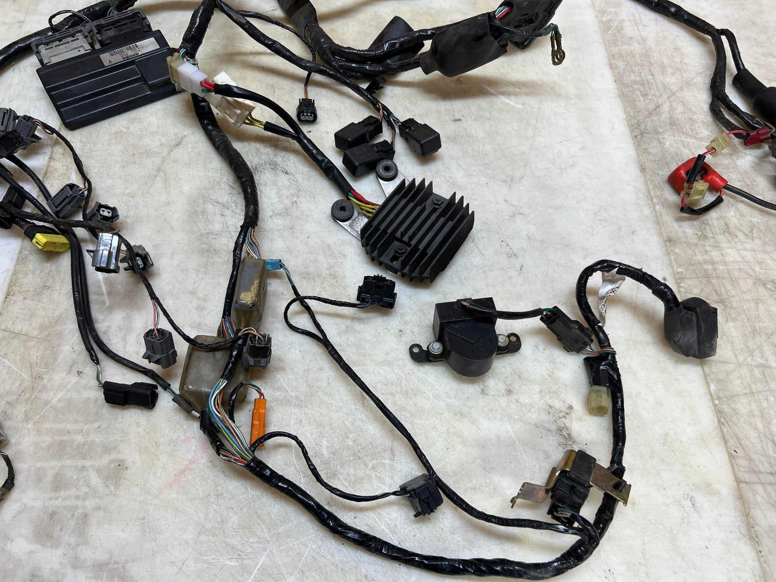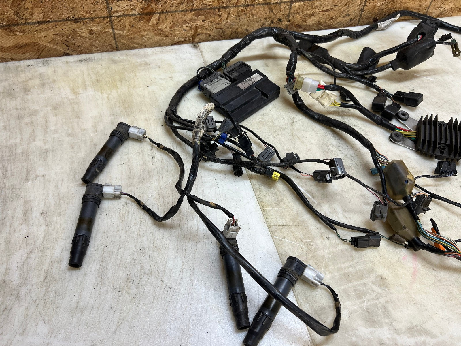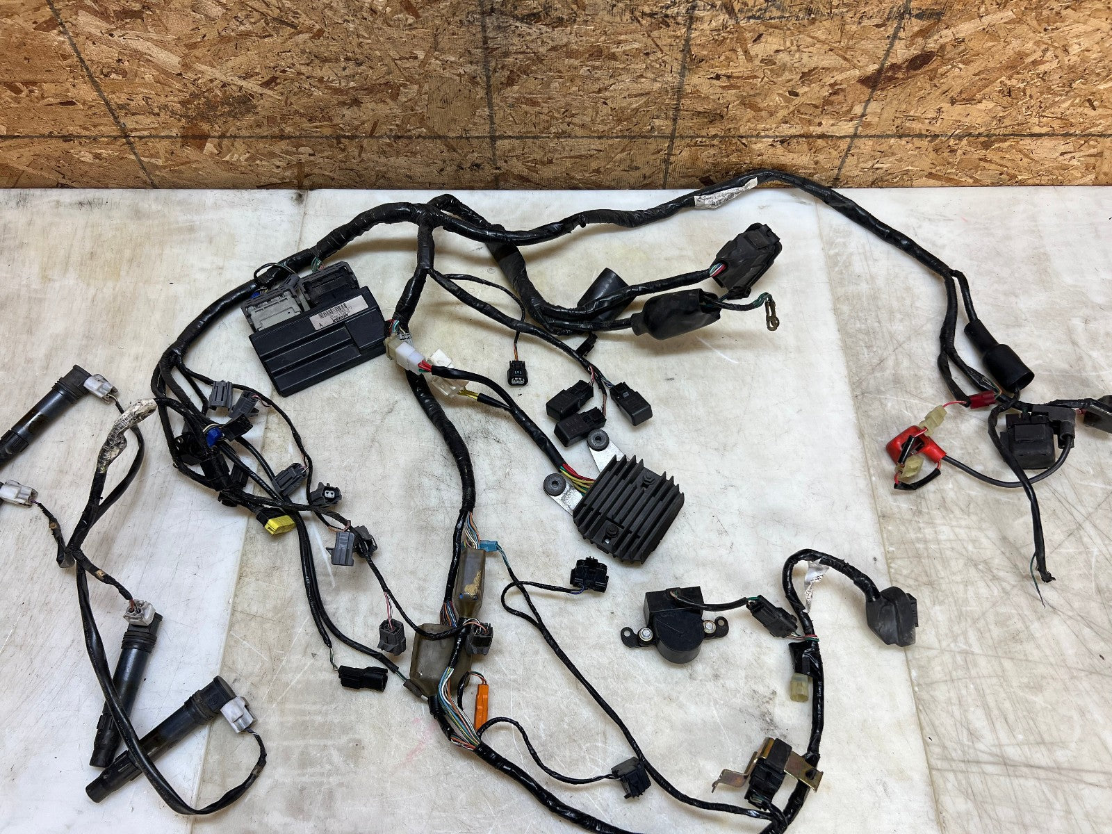 This wiring harness and ECU are in perfect working order and was tested before being removed. Harness comes complete with all relays and ignition coils with regulator rectifier and tip over sensor. There is one broken plug for the rear signals, as seen in photos.
