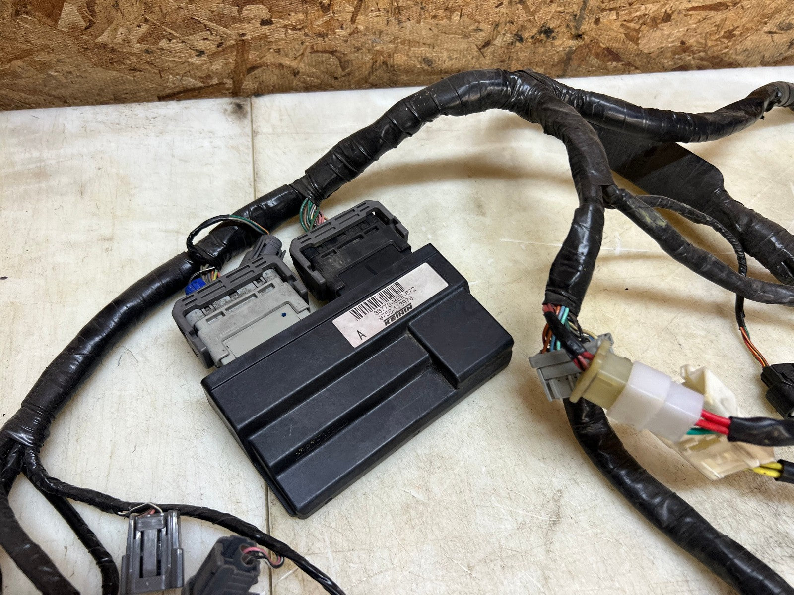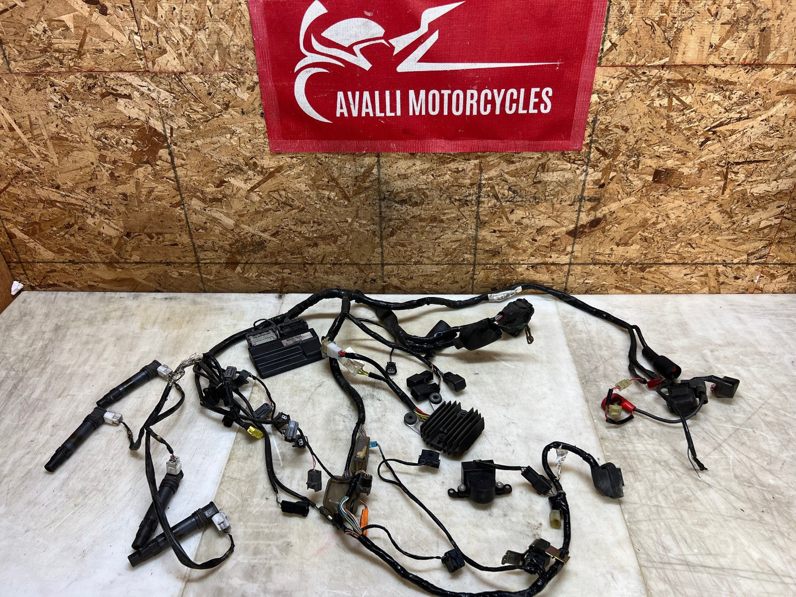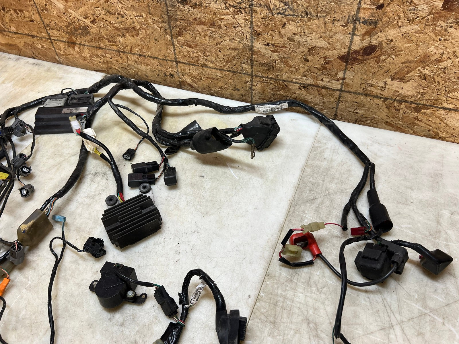 This wiring harness and ECU are in perfect working order and was tested before being removed. Harness comes complete with all relays and ignition coils with regulator rectifier and tip over sensor. There is one broken plug for the rear signals, as seen in photos.