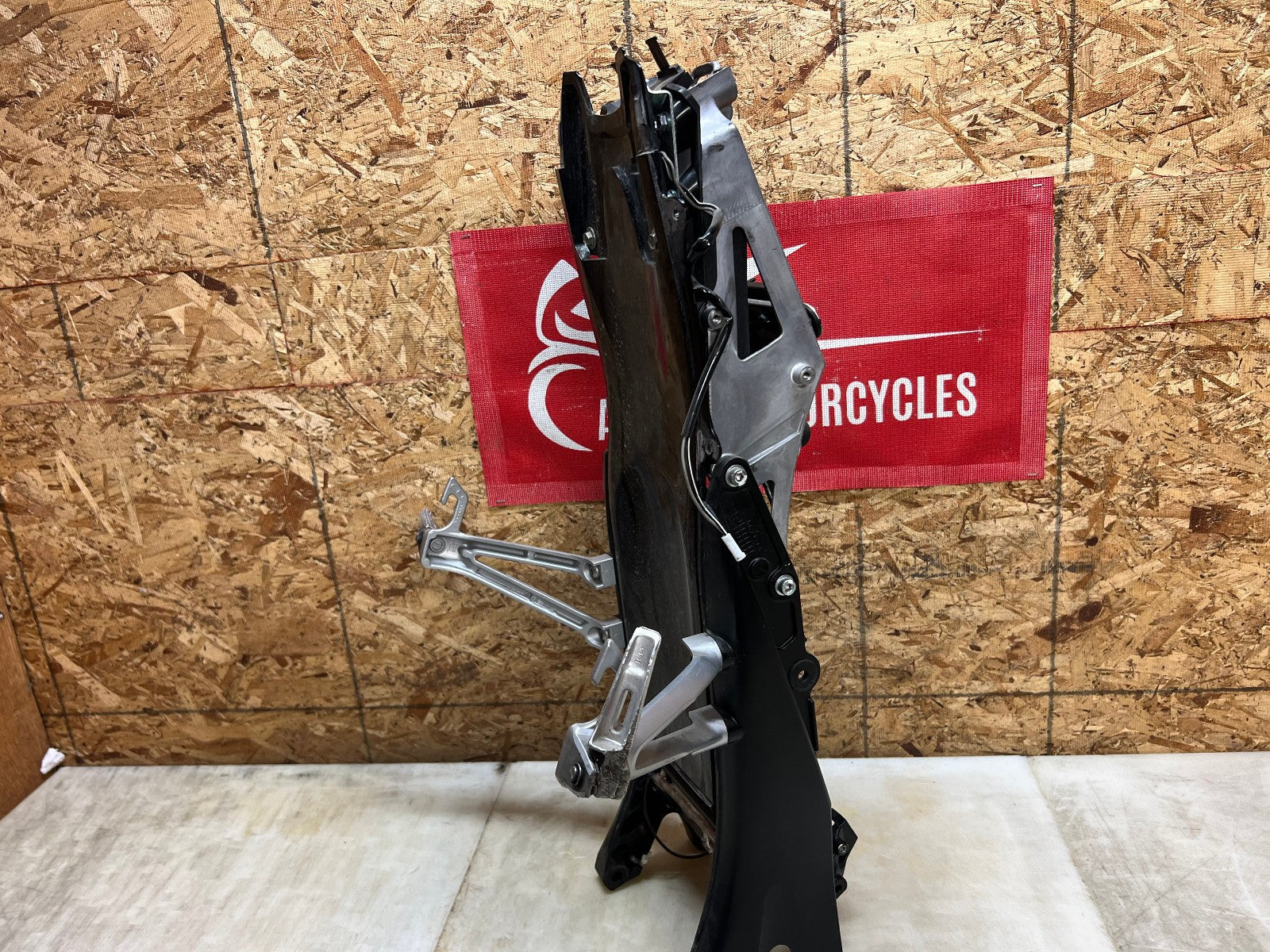 This subframe is in excellent condition and is straight and true and comes complete with battery tray and passenger pegs. The right side passenger peg has some slight road rash as shown in the close up picture. As seen in the pictures.