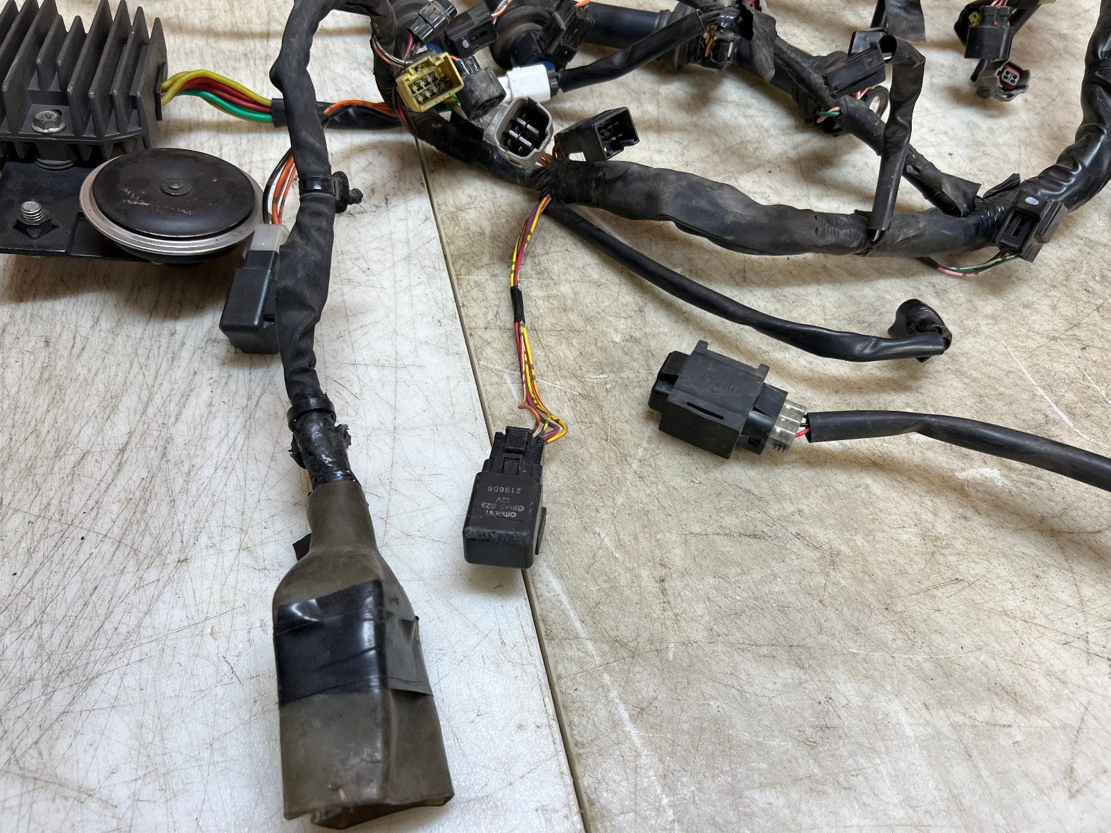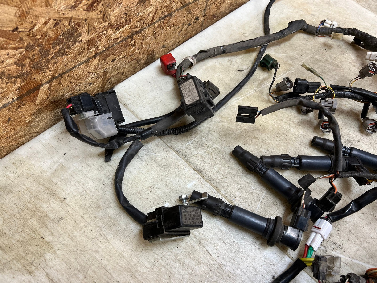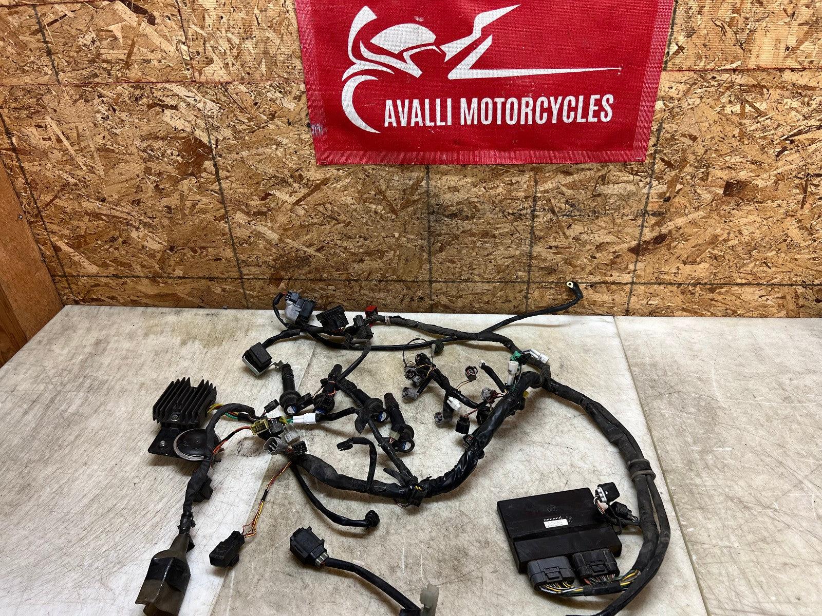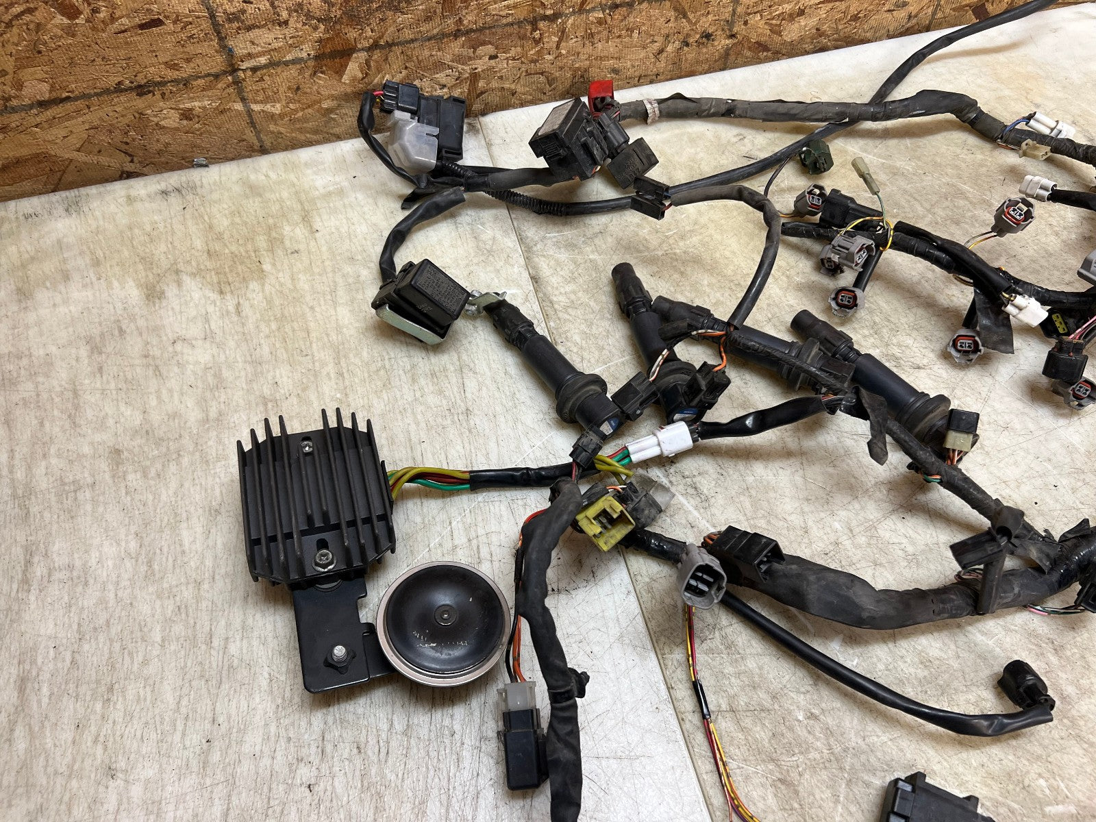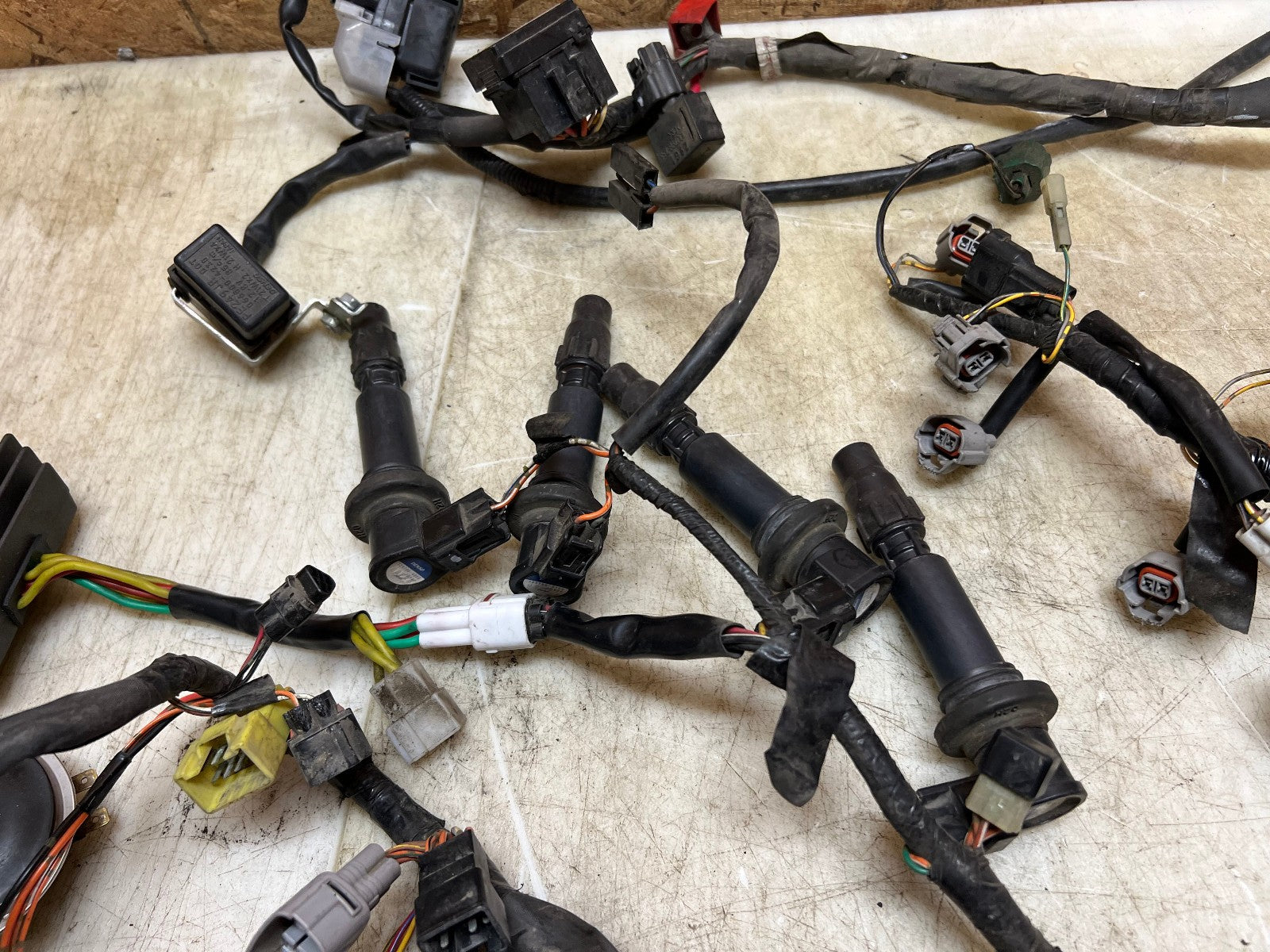 This wiring harness & ECU is in perfect working order and was tested before being removed as shown in the video below. Comes complete with regulator rectifier, starter relay and ignition coils. There are no broken plugs or stripped wires, as shown in the pictures.