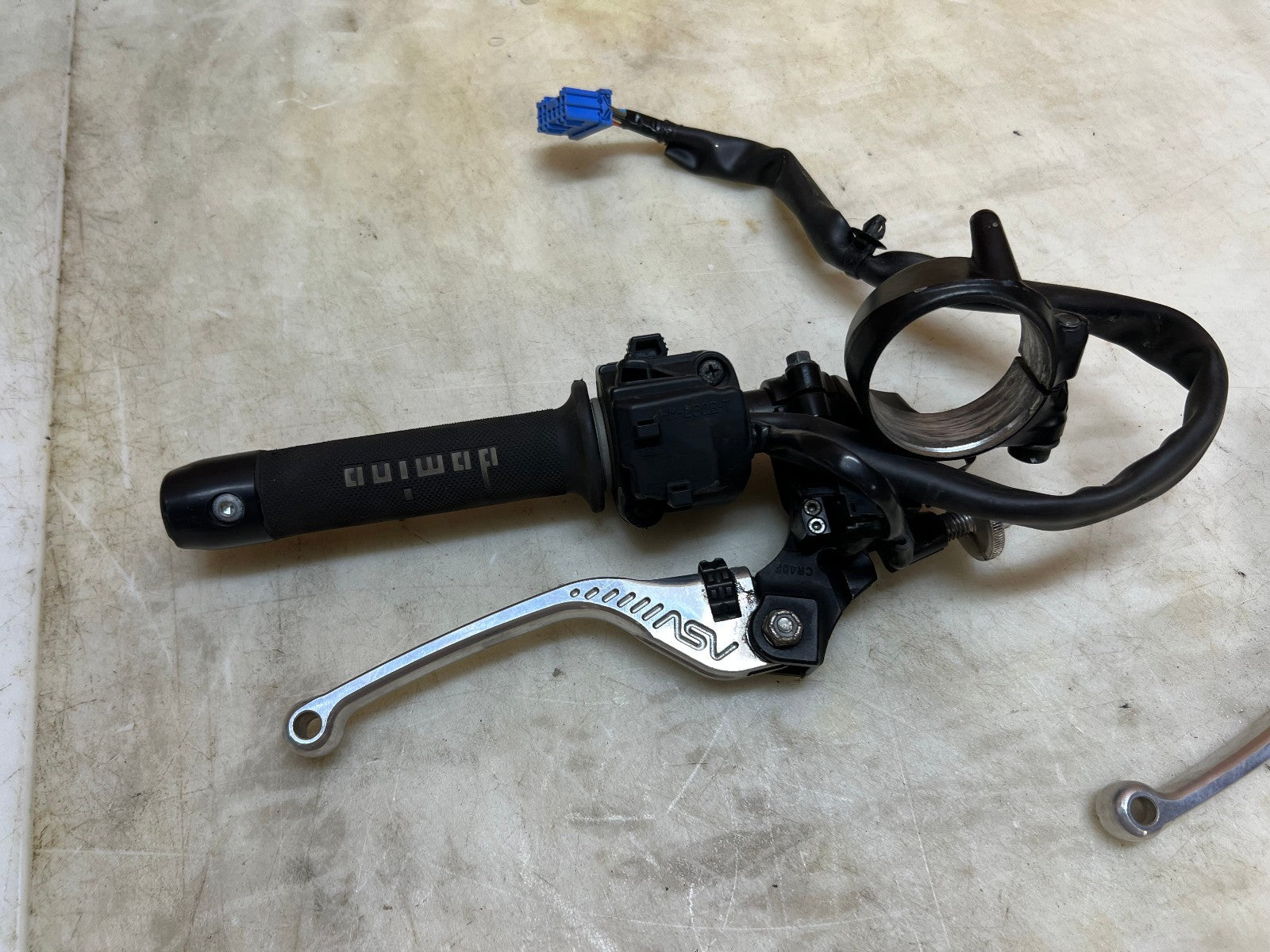 This left clip on handle bar is in excellent condition and is straight and true and comes complete with headlight switch and ASV levers for both sides as a pair, as seen in the pictures.