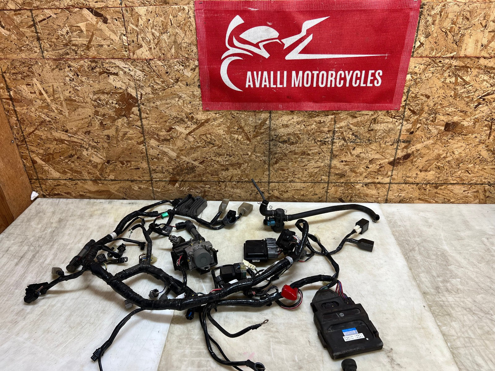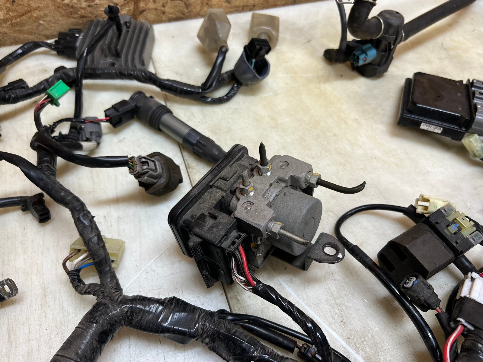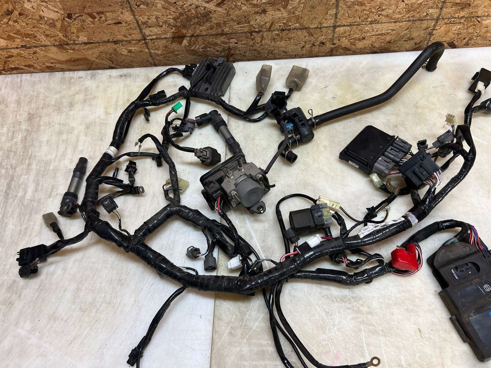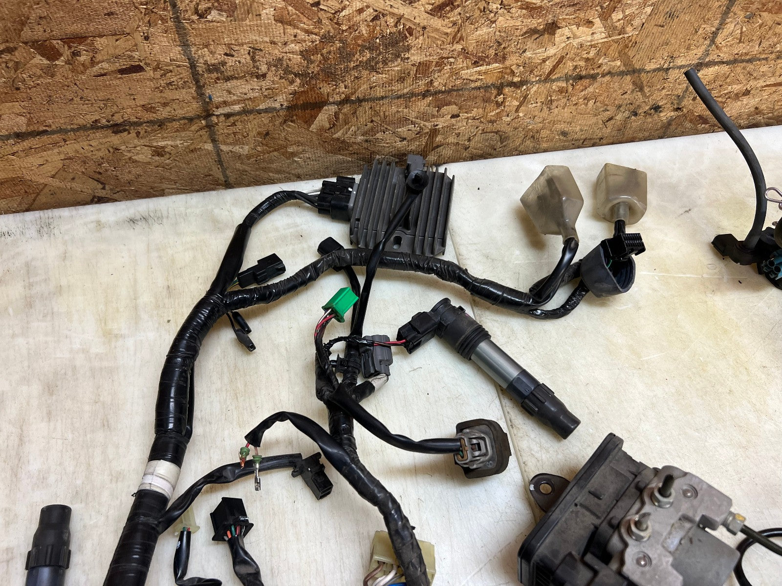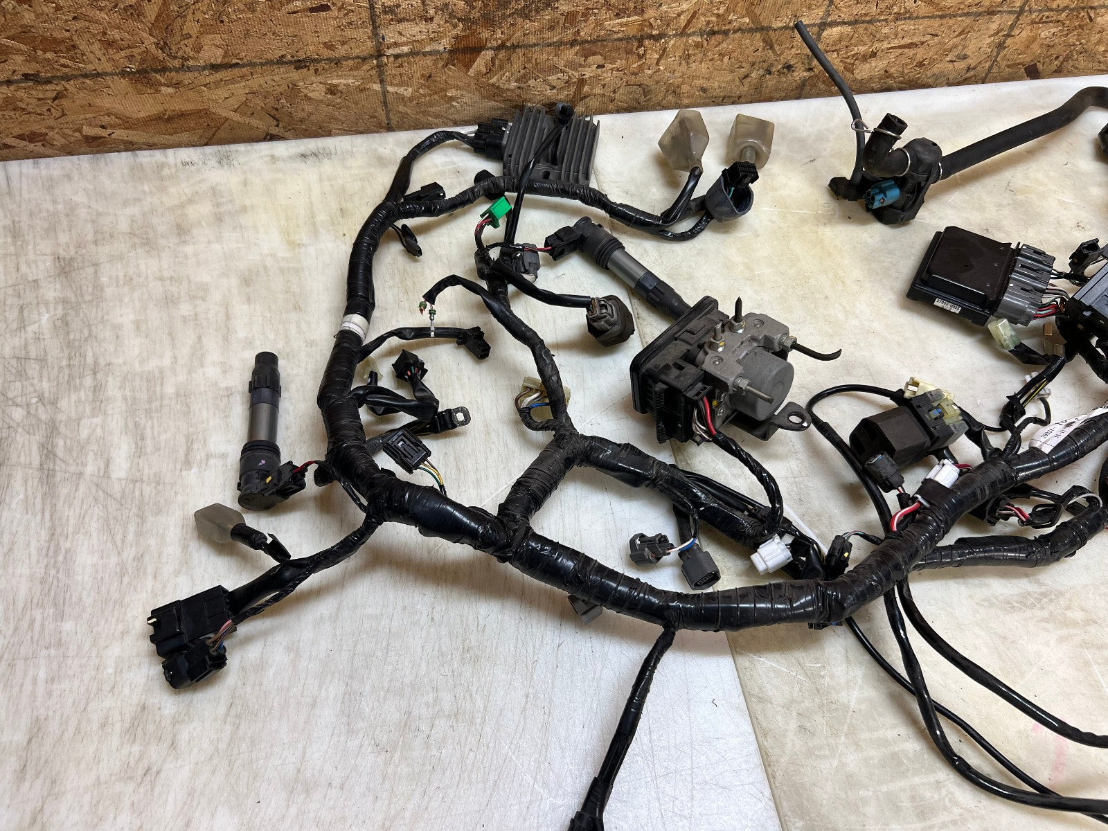 This wiring harness and ECU are in perfect working order and were tested before being removed. This harness comes from an ABS model and comes with the ABS pump and abs control module. Harness comes complete with all relays and regulator rectifier and ignition coils. There is one plug that the wires got pulled out of and will need to re-pin 2 wires as shown in the pictures, as seen in photos.