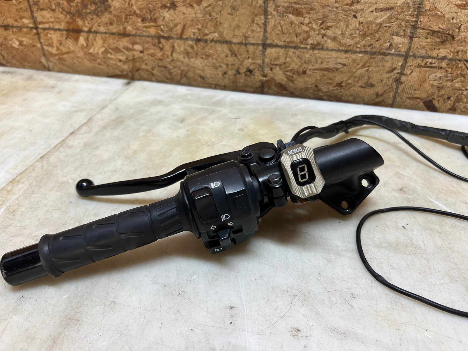 This handlebar is in excellent condition and is straight and true and comes complete with headlight switch, clutch perch and lever and gear display, as seen in photos.