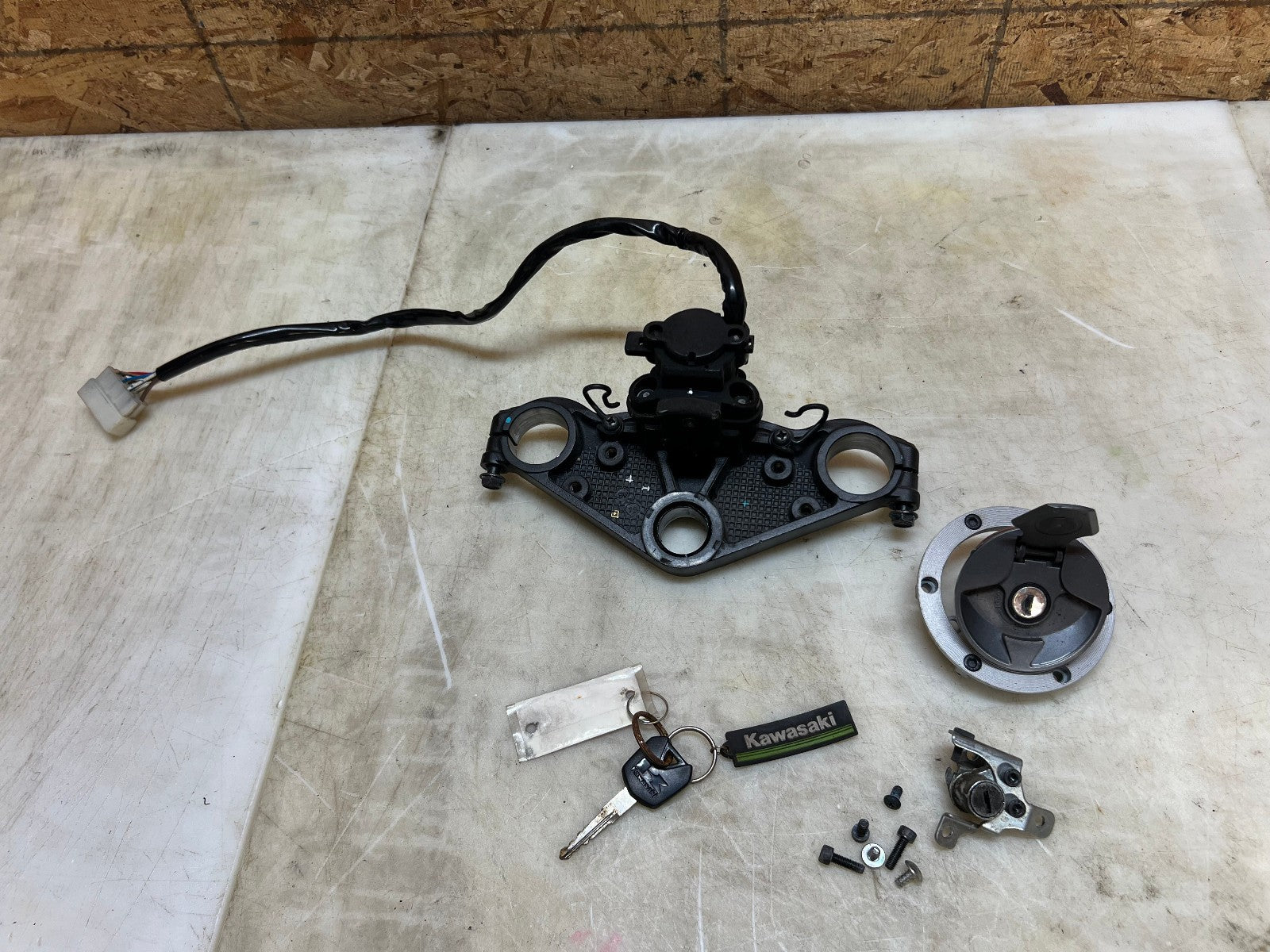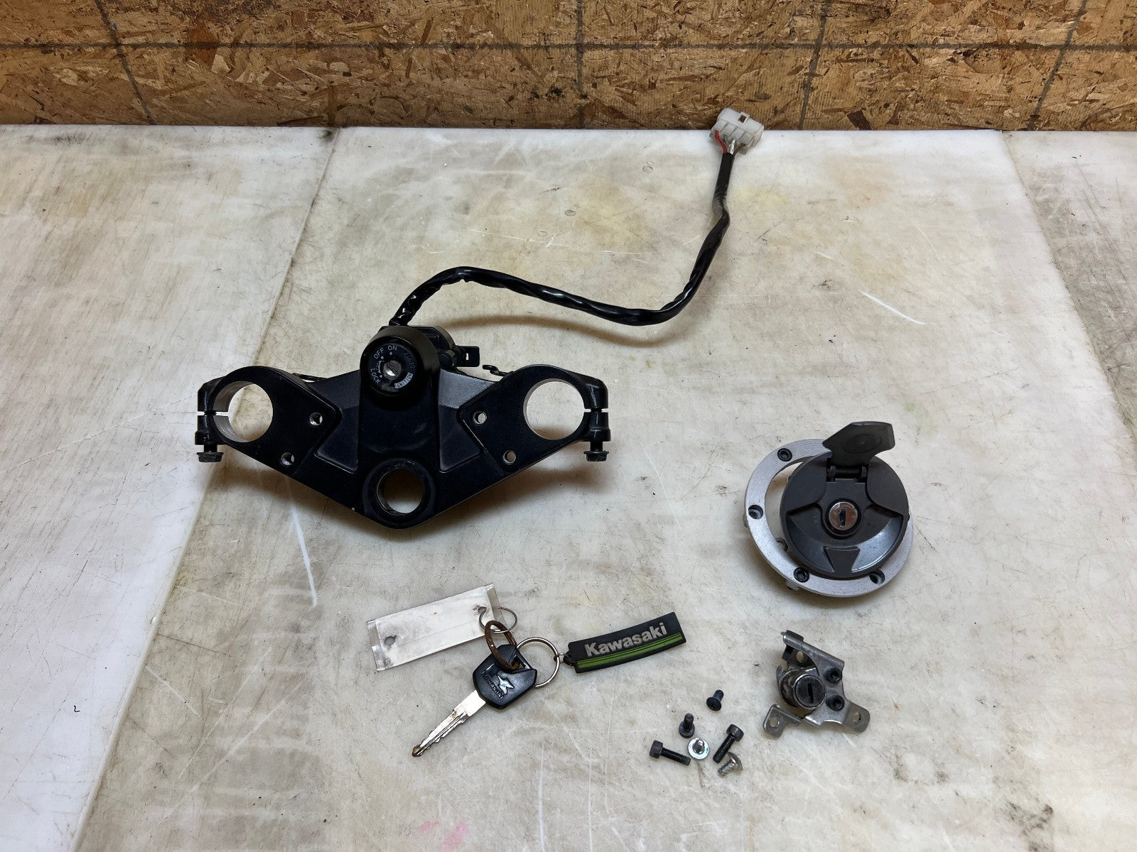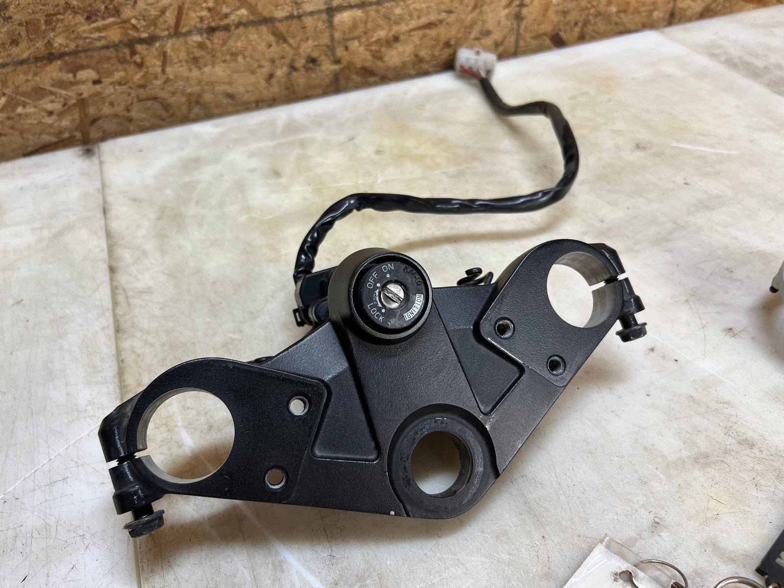 This lock set is in excellent working condition and was tested before being removed and comes complete with everything needed to re-key your motorcycle including the top triple tree, as seen in photos.