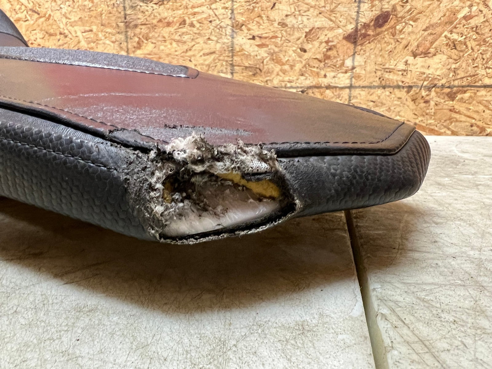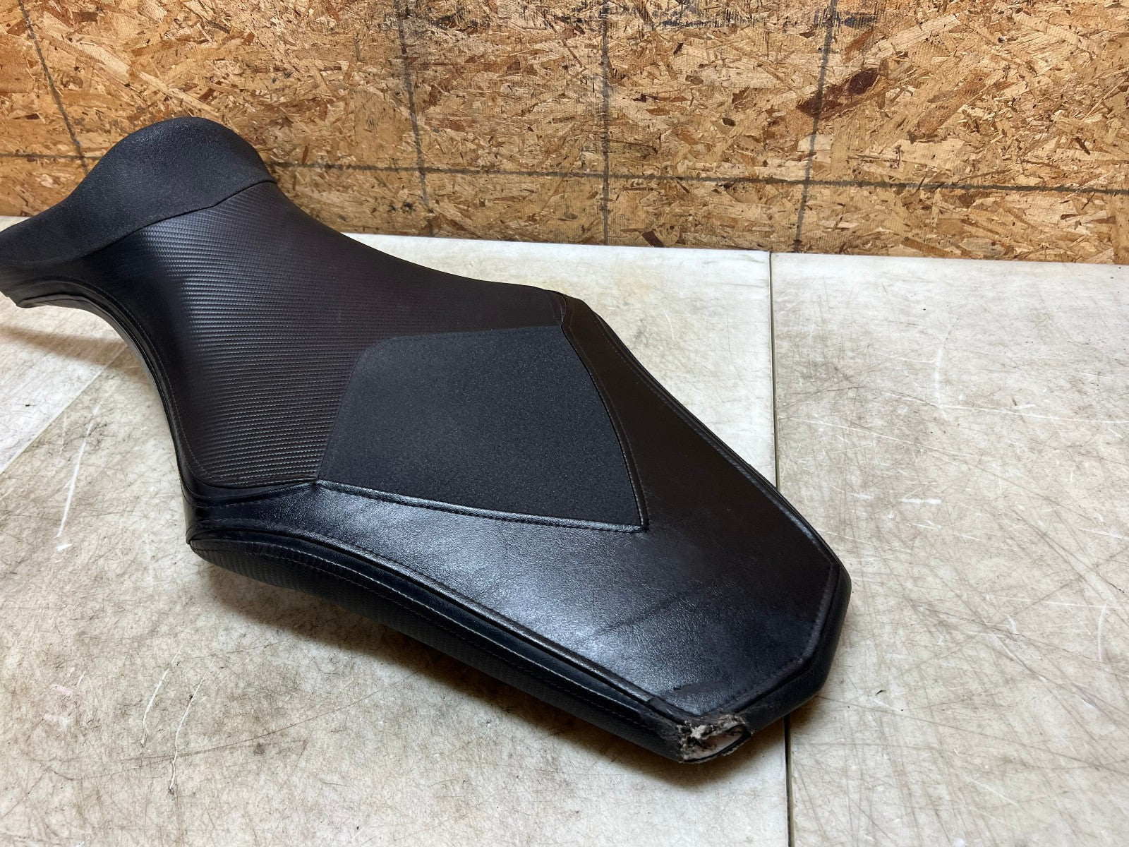 This aftermarket seat sustained some damage to the left rear corner as shown in the close up pictures however would make a good project for a handyman, as seen in photos.