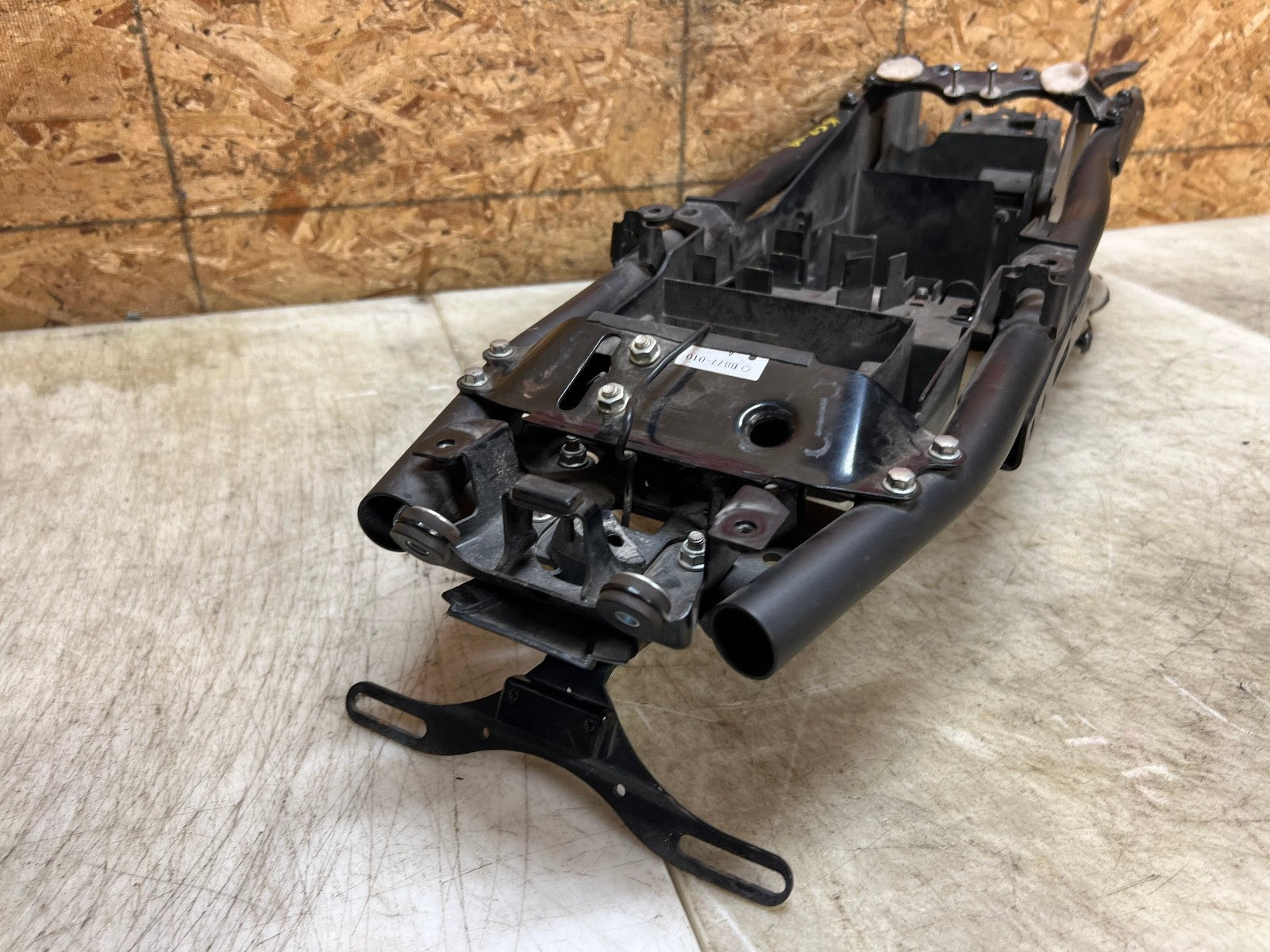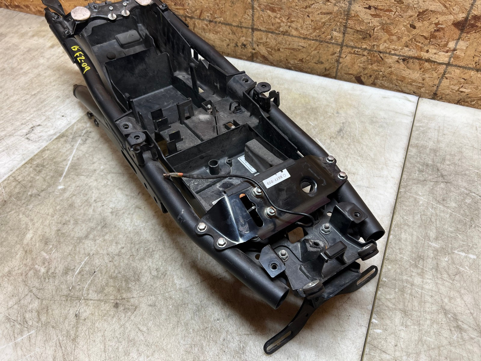 This subframe is in excellent condition and is straight and true and comes complete with battery tray and license plate bracket, as seen in photos.