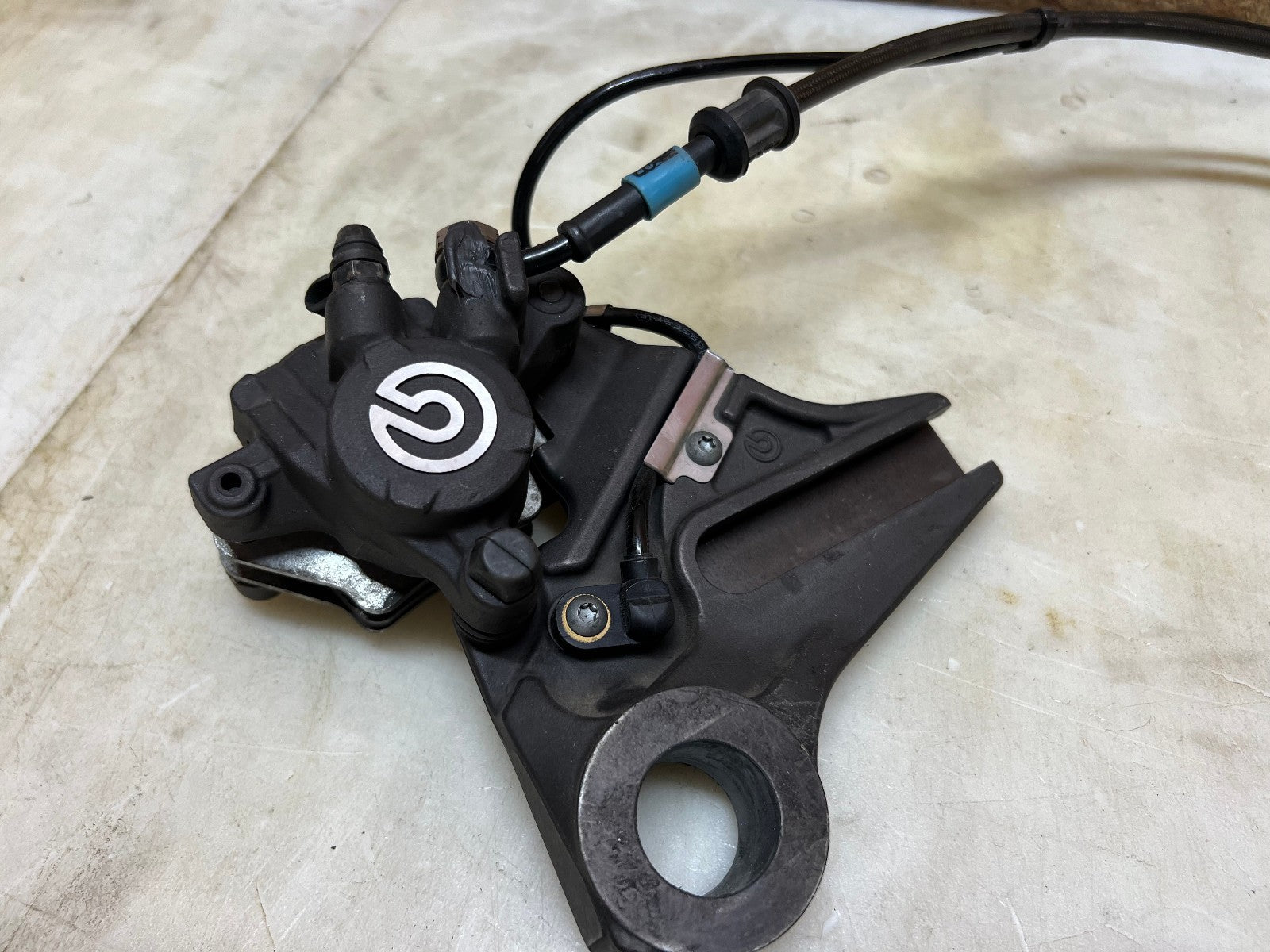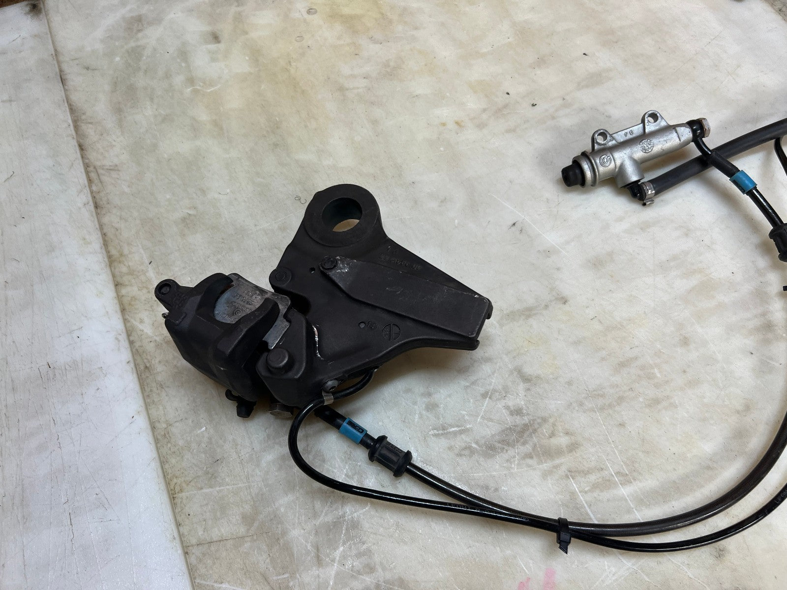 This rear brake caliper is in perfect working order and was tested before being removed and comes complete with axle hangar, master cylinder and abs sensor, as seen in the pictures.