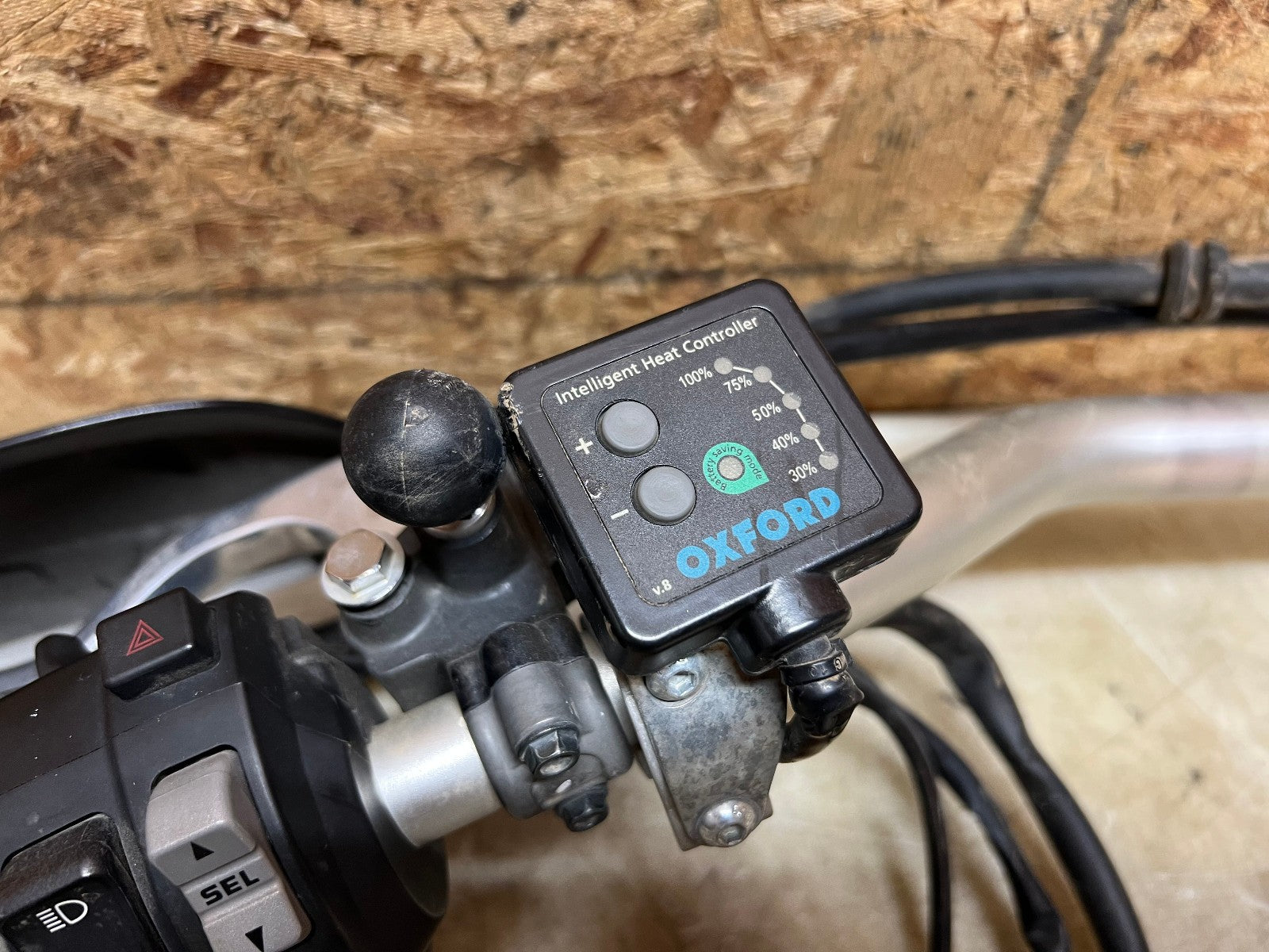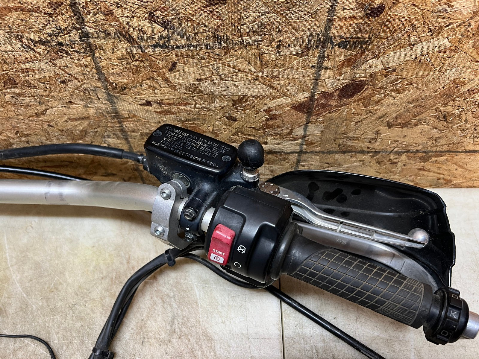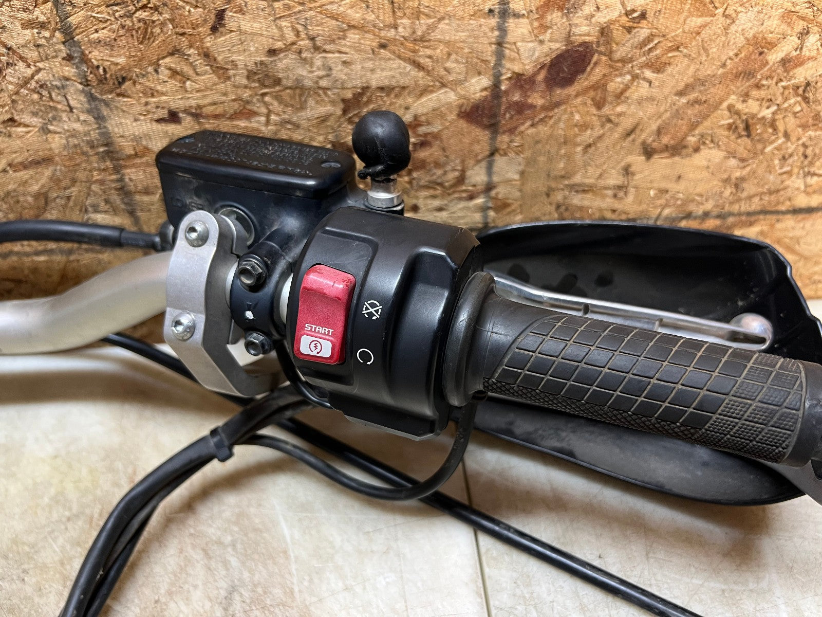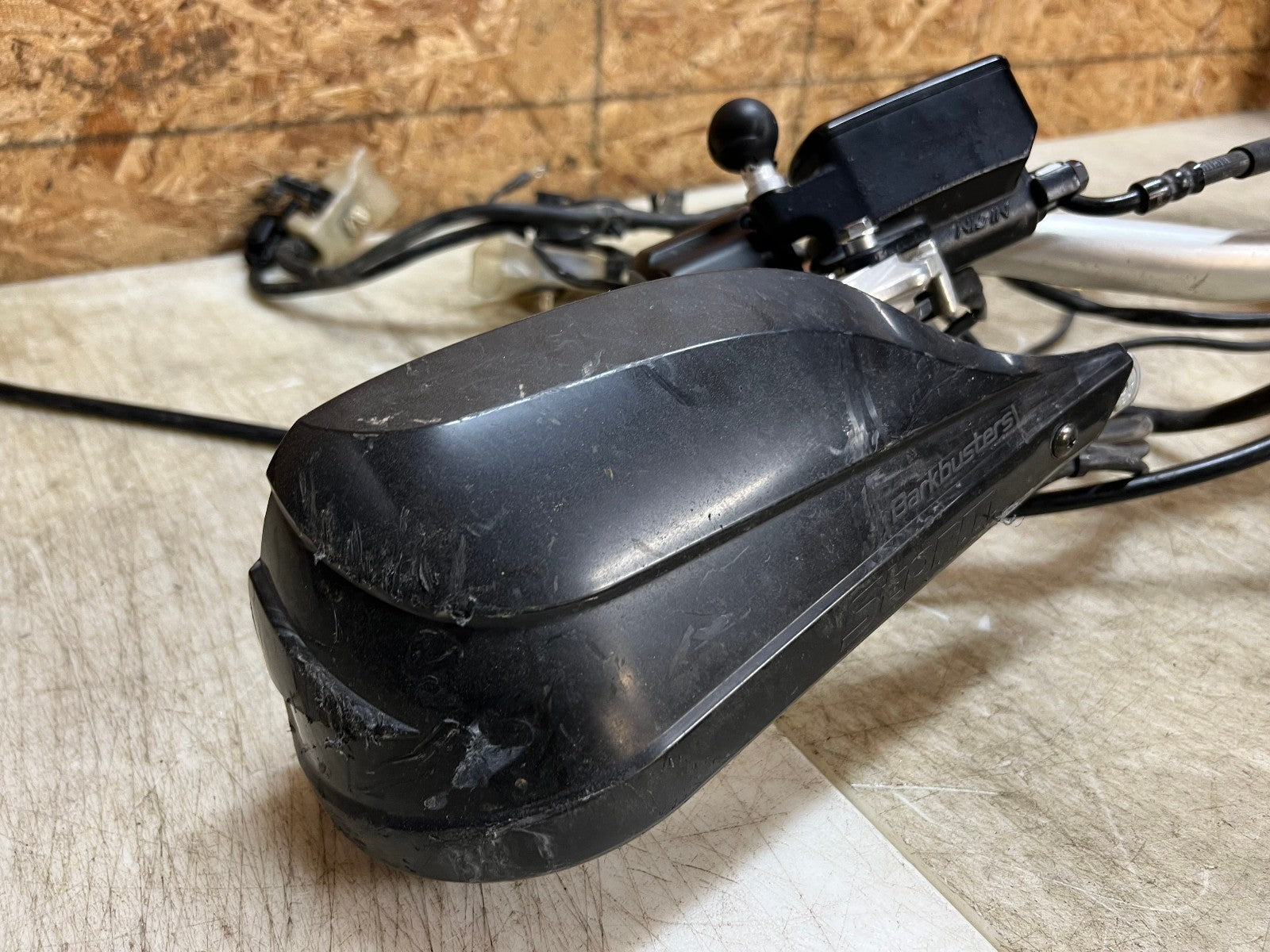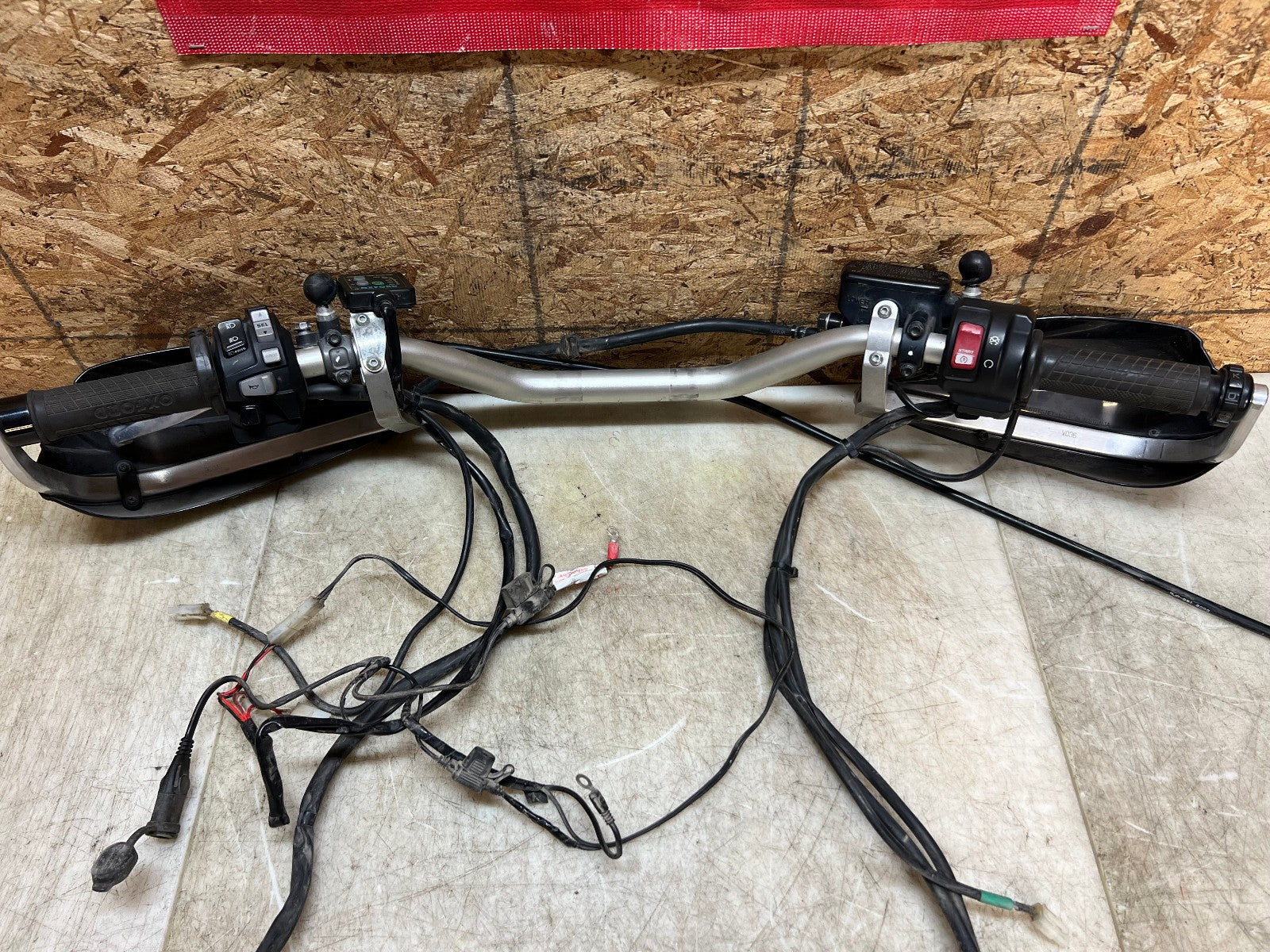 These handlebars are in excellent condition and come fully complete as shown with all the switch cube controls for headlights and on and off switch. This set up also comes complete with the brake master cylinder along with clutch perch and clutch cable. This set up ALSO comes with Oxford heated grips with the controller and associated wiring. Also along with this package is some BarkBuster hand guards which do have some slight damage to them shown in the close up pictures however are very usable. Please review the video below.
