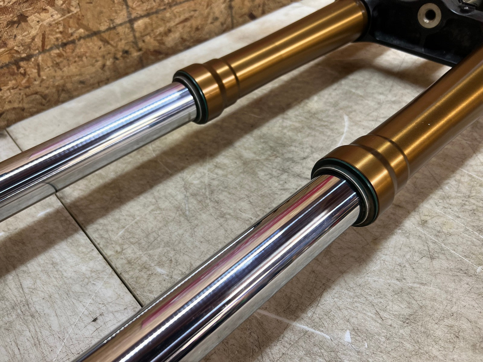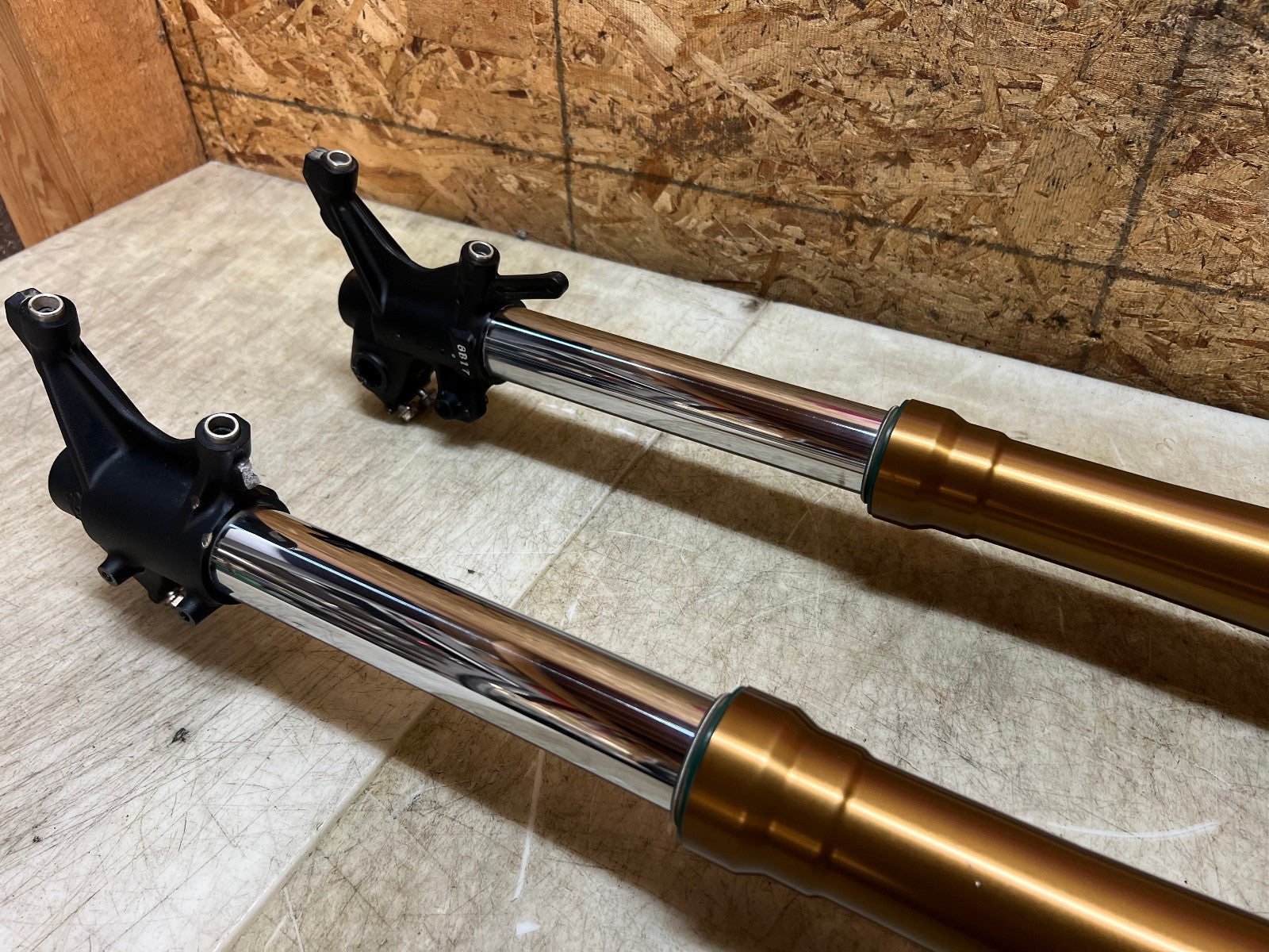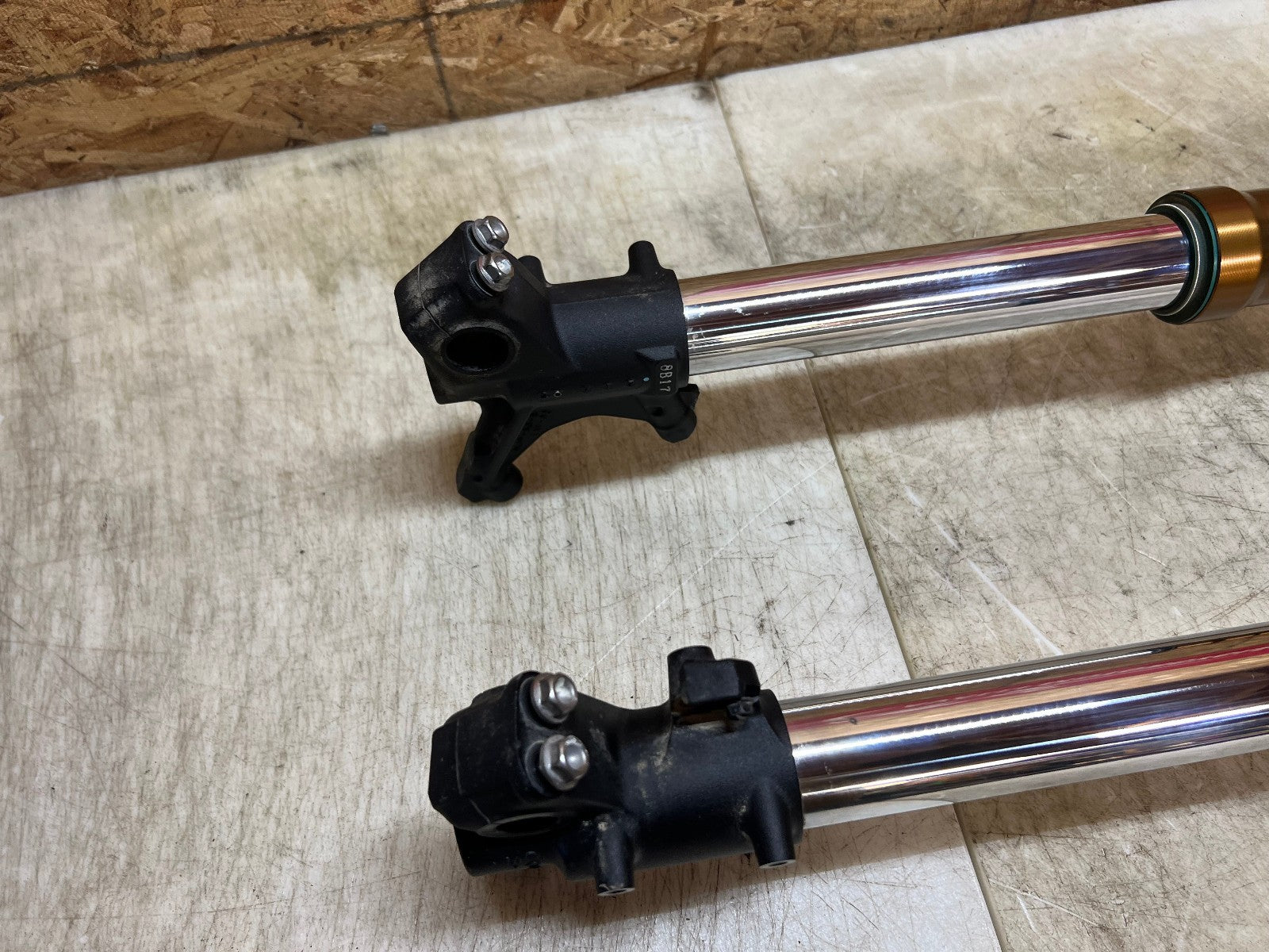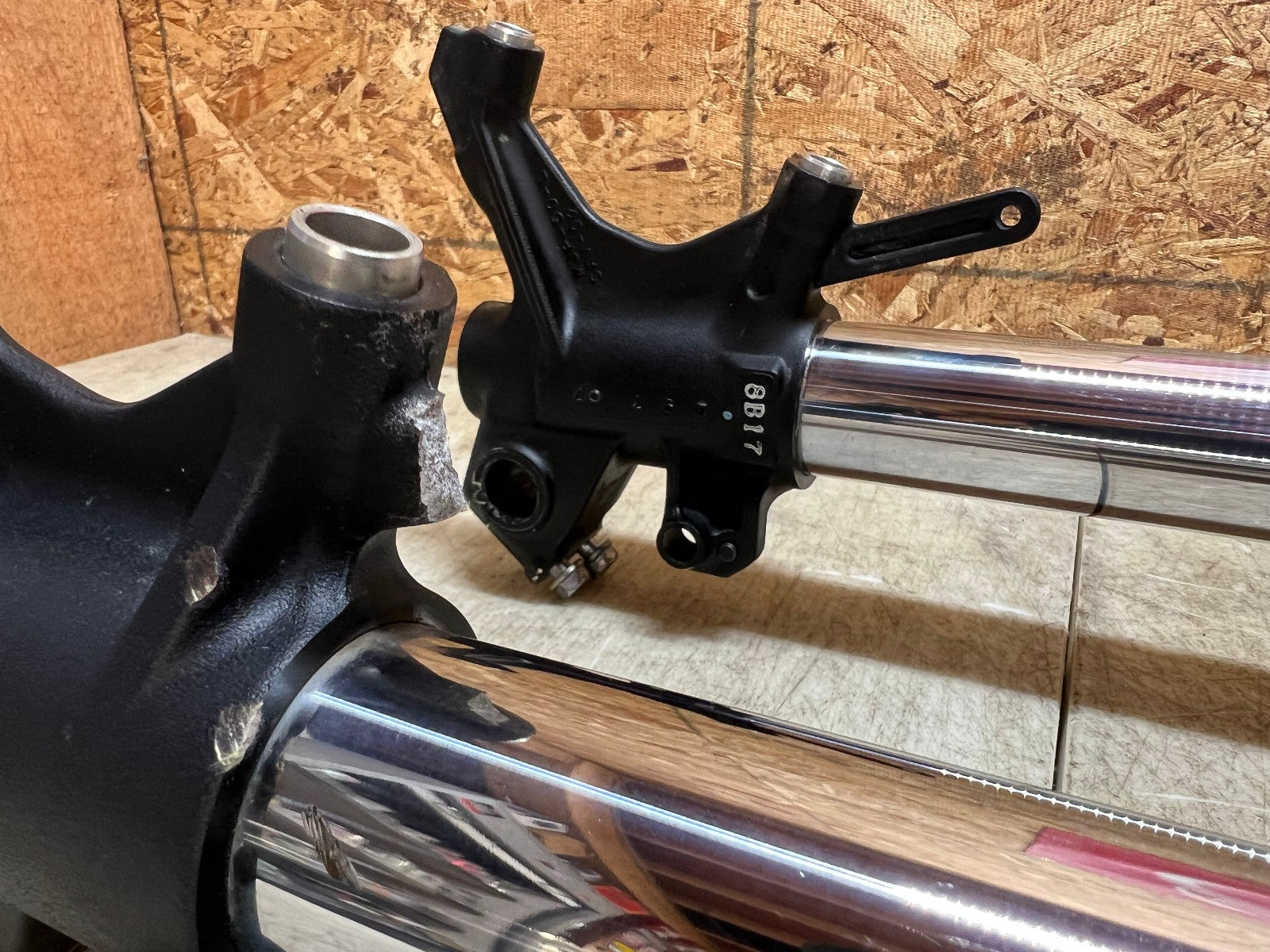 These forks are in excellent condition and are straight and true with NO leaks. Forks come complete with upper and lower triple trees. One of the fender mounts has been broken off but DOES come with the forks for repair which is shown in the last few pictures of this listing. Please review the video below.
