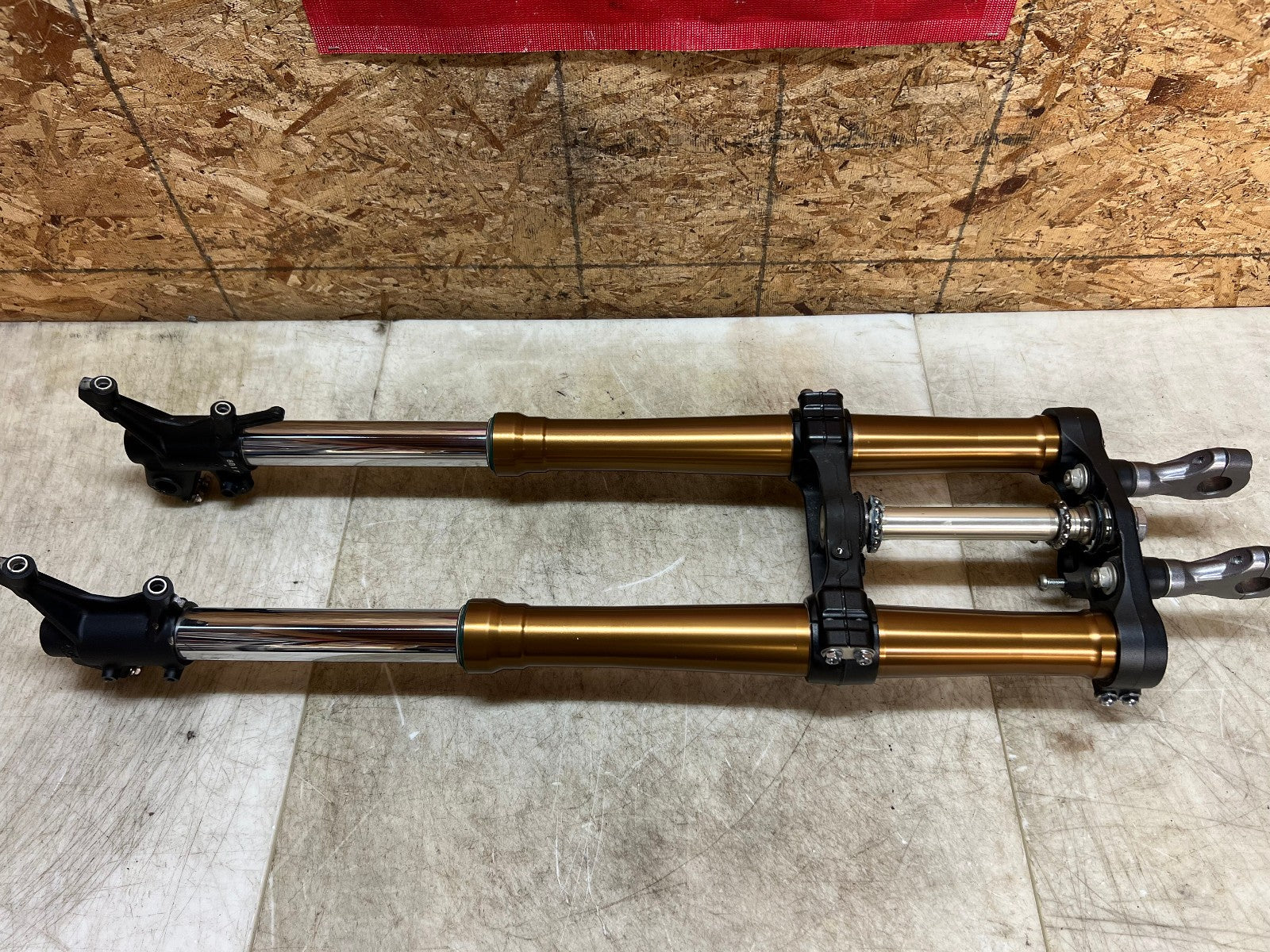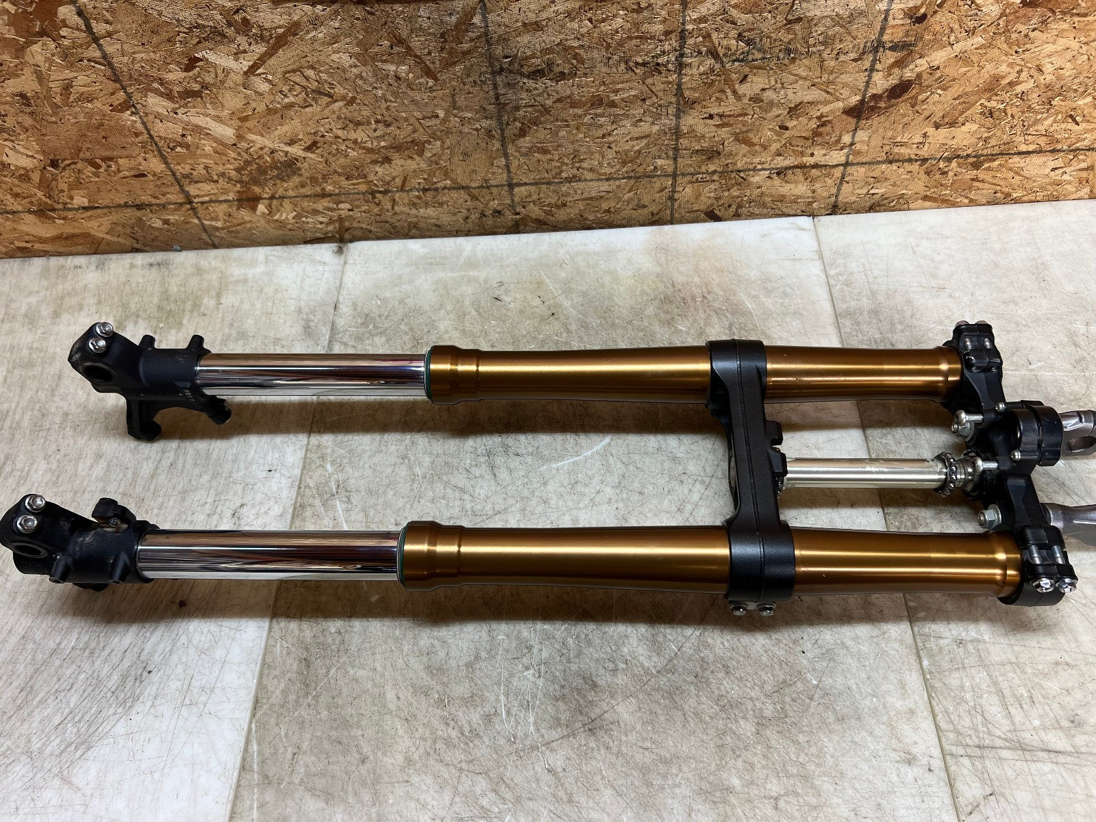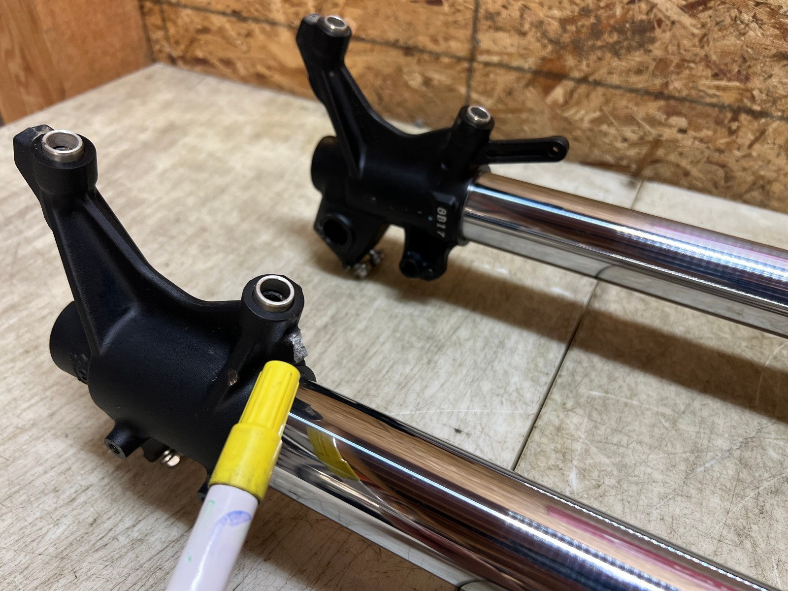 These forks are in excellent condition and are straight and true with NO leaks. Forks come complete with upper and lower triple trees. One of the fender mounts has been broken off but DOES come with the forks for repair which is shown in the last few pictures of this listing. Please review the video below.