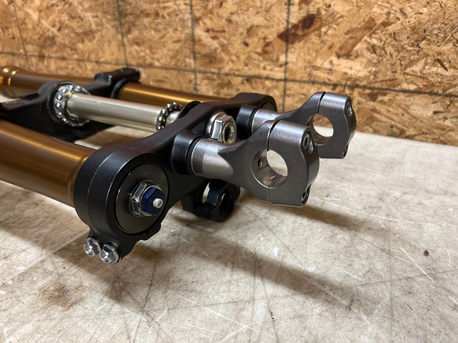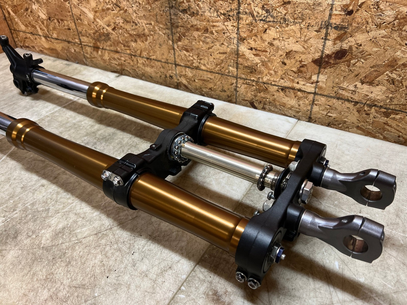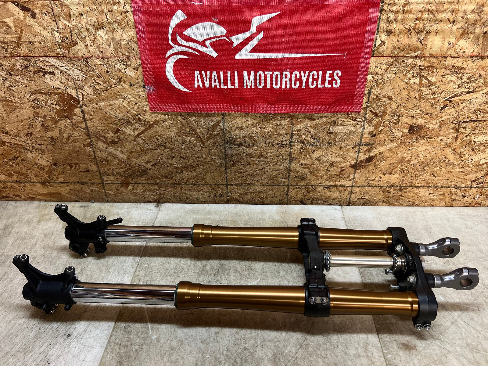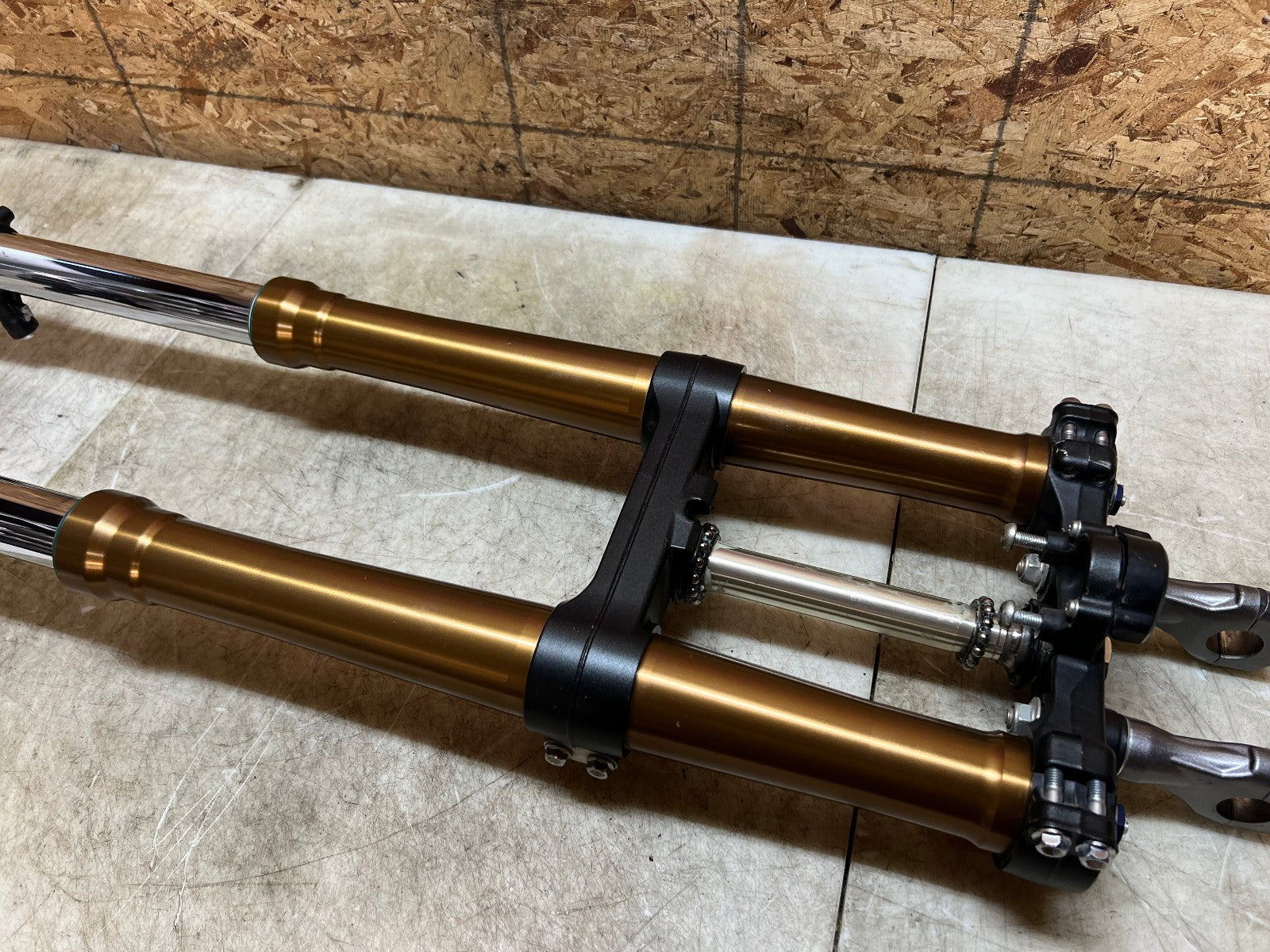These forks are in excellent condition and are straight and true with NO leaks. Forks come complete with upper and lower triple trees. One of the fender mounts has been broken off but DOES come with the forks for repair which is shown in the last few pictures of this listing. Please review the video below.