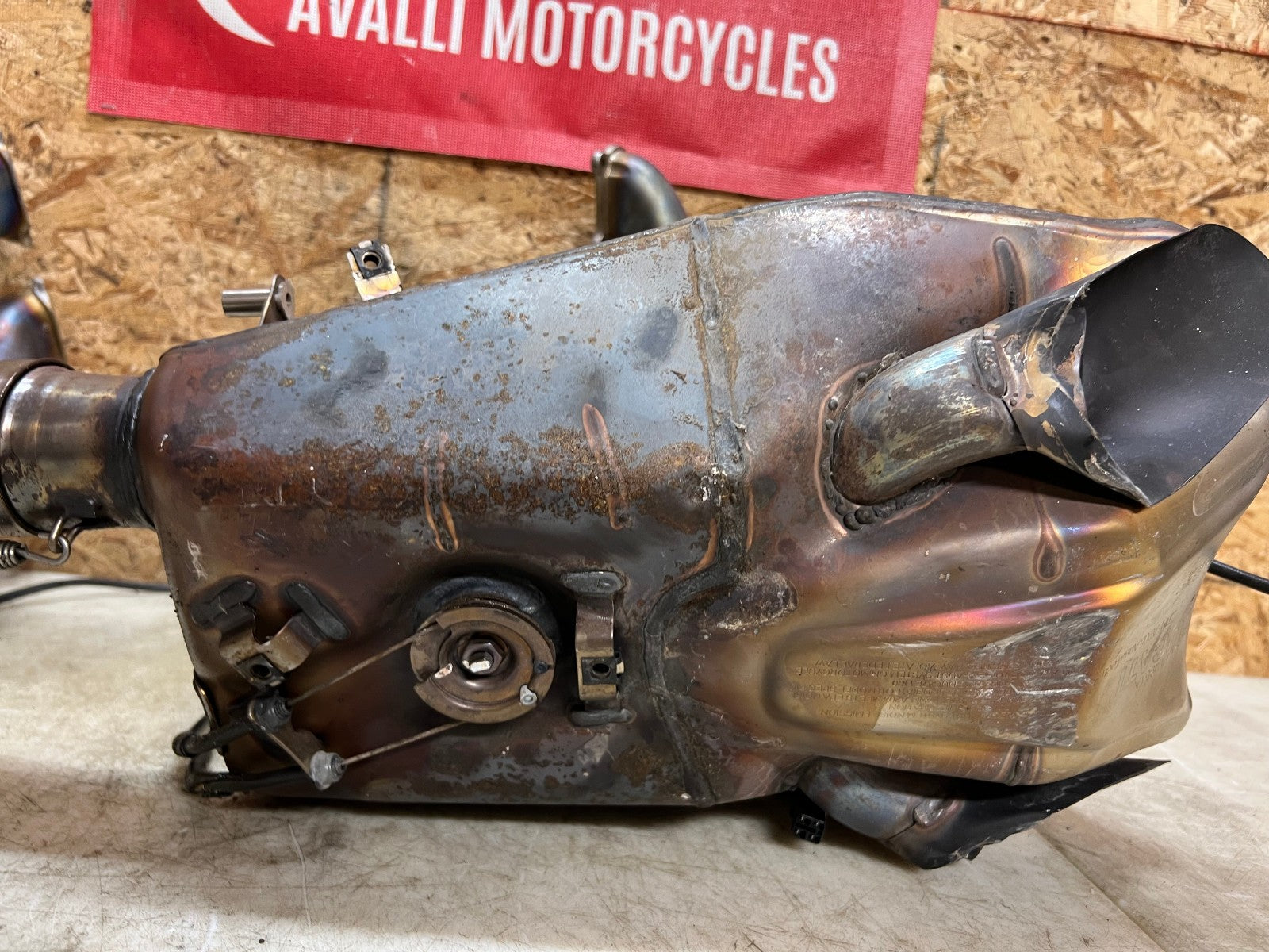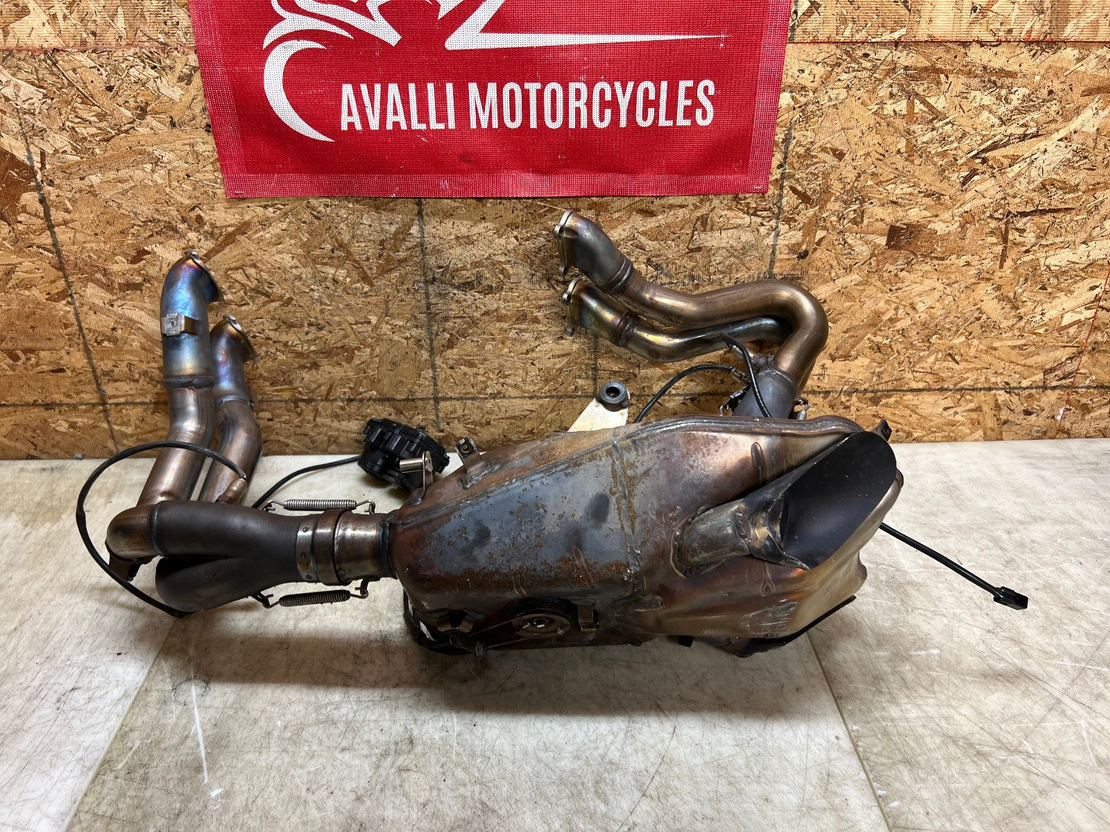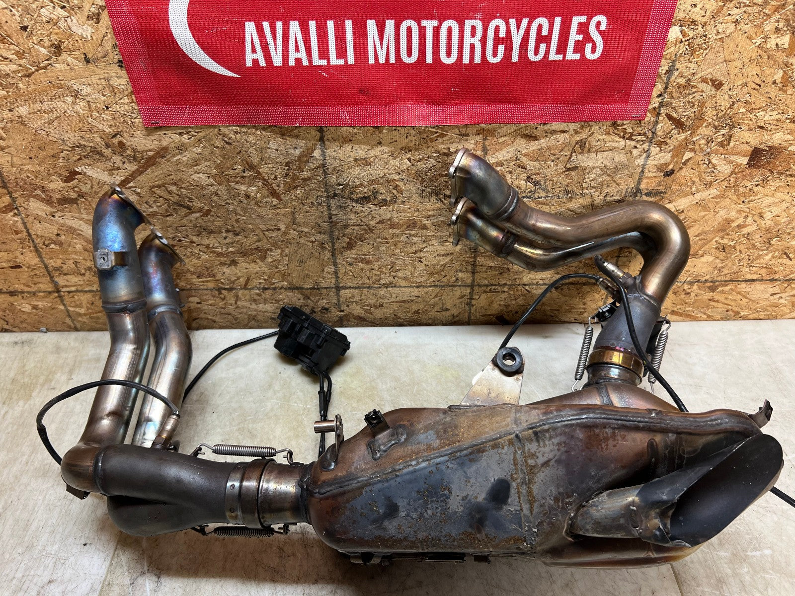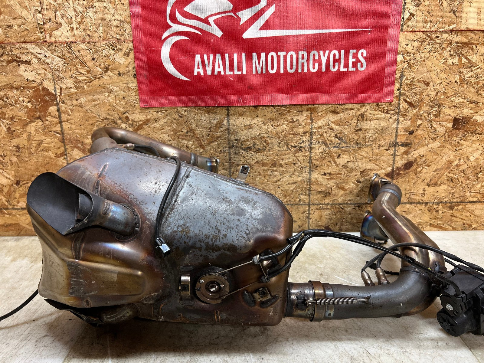 This exhaust is being sold complete with both header sides complete with O2 sensors and SERVO motor. There is some slight damage to the bottom where the exhaust exits, as seen in photos.