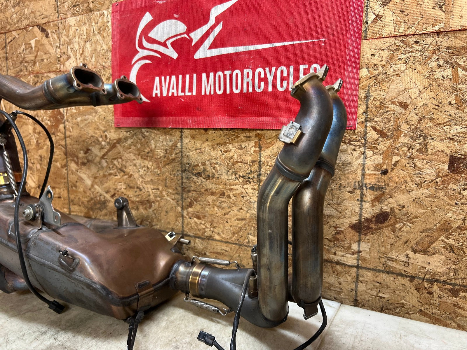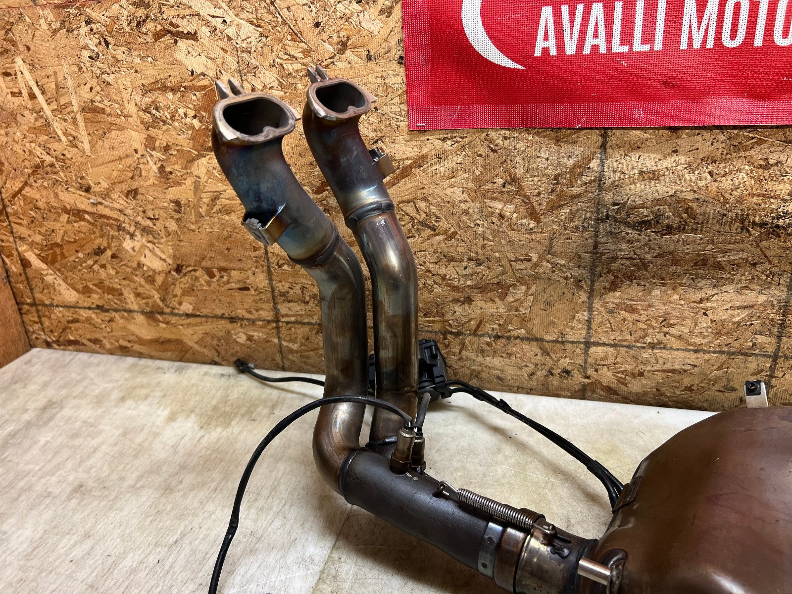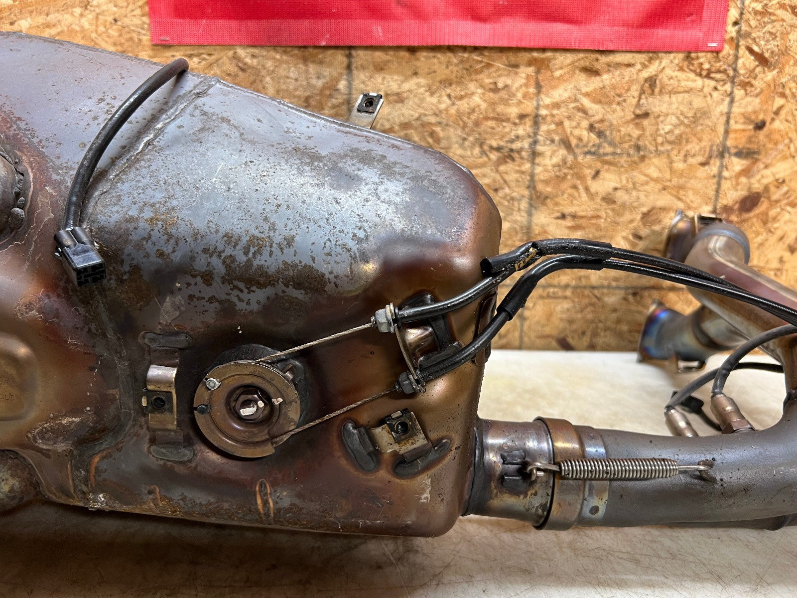 This exhaust is being sold complete with both header sides complete with O2 sensors and SERVO motor. There is some slight damage to the bottom where the exhaust exits, as seen in photos.