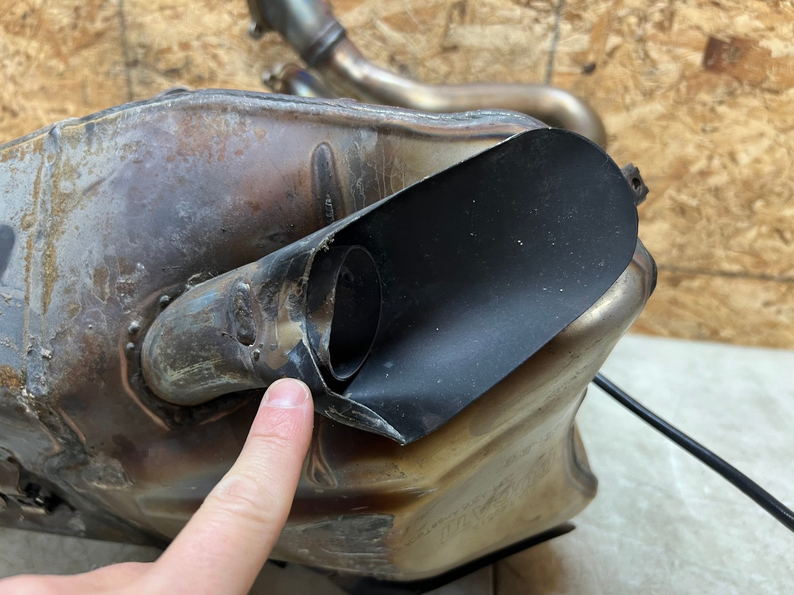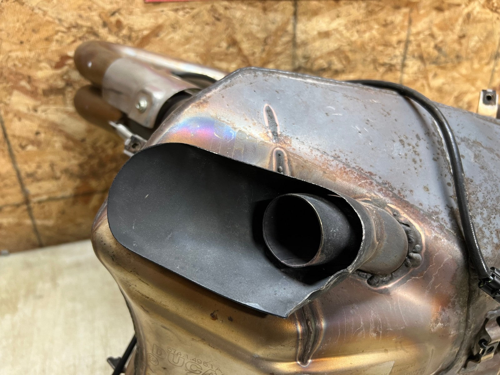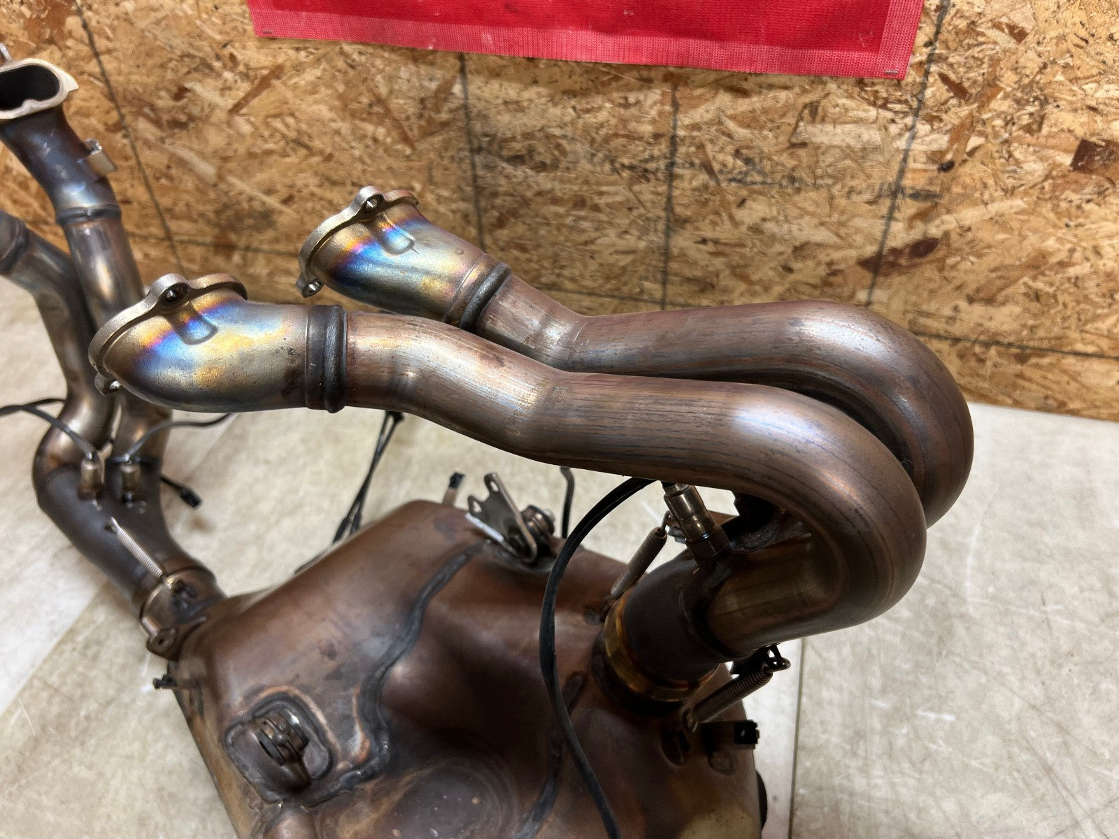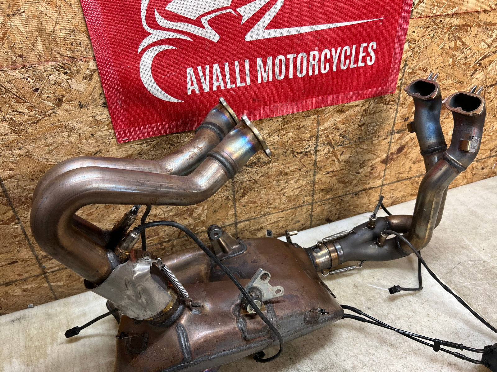This exhaust is being sold complete with both header sides complete with O2 sensors and SERVO motor. There is some slight damage to the bottom where the exhaust exits, as seen in photos.