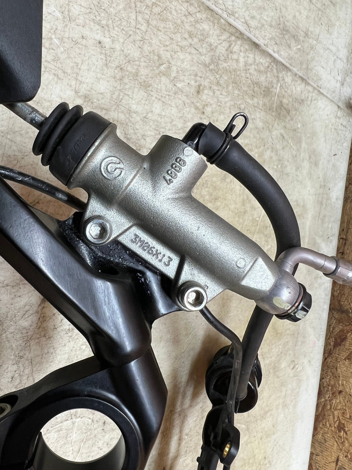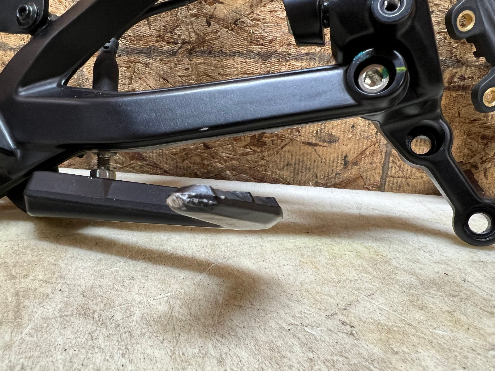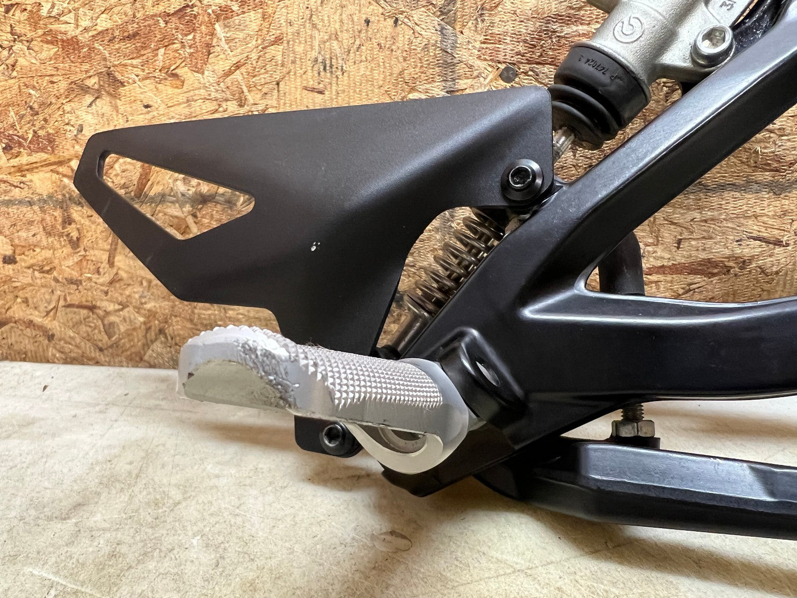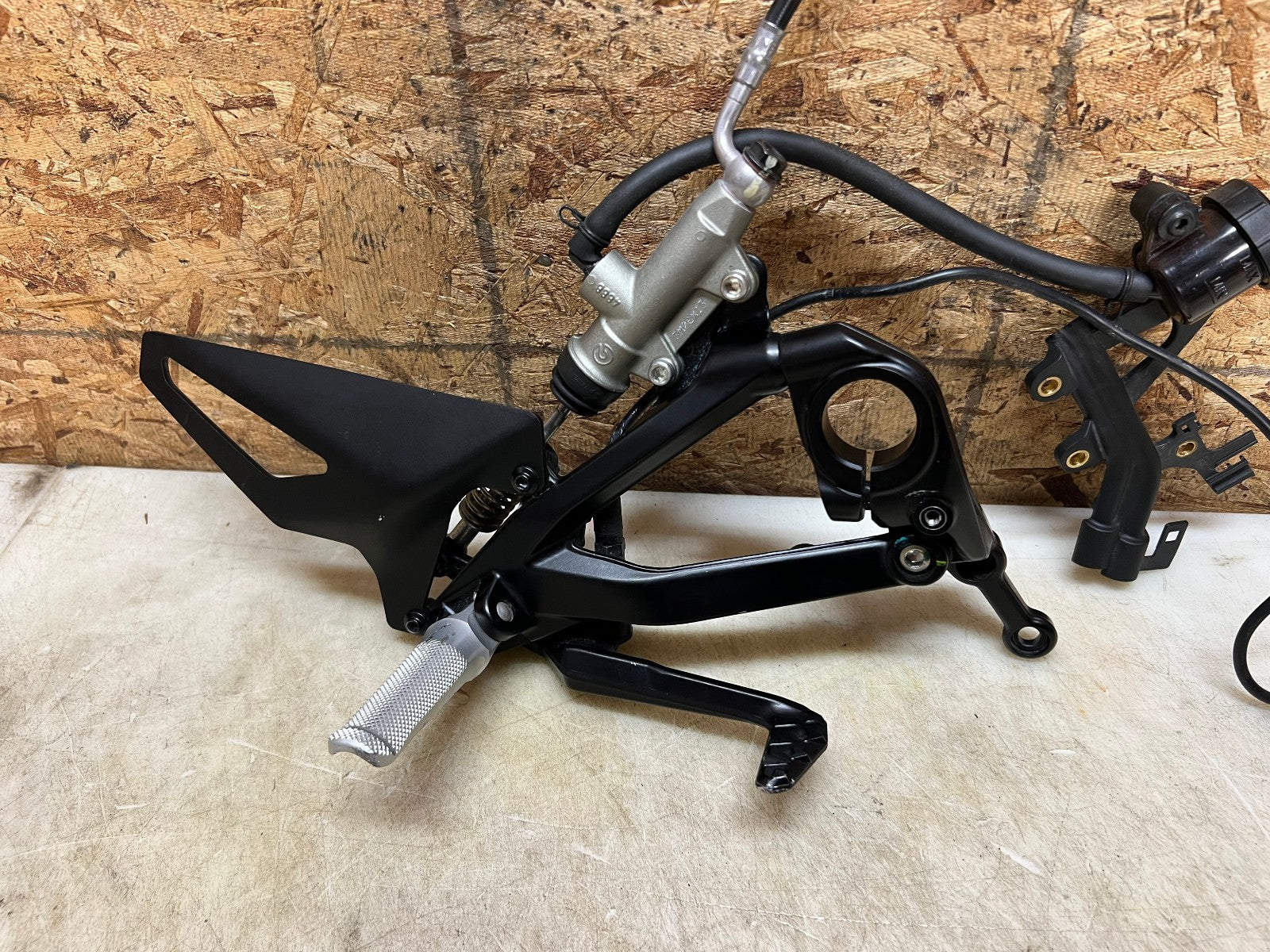 This rearset is in excellent condition and is straight and true and comes complete with brake master cylinder. There are some very light rash marks on the tip of the lever and the tip of the footpeg as shown in the close up pictures, as seen in photos.