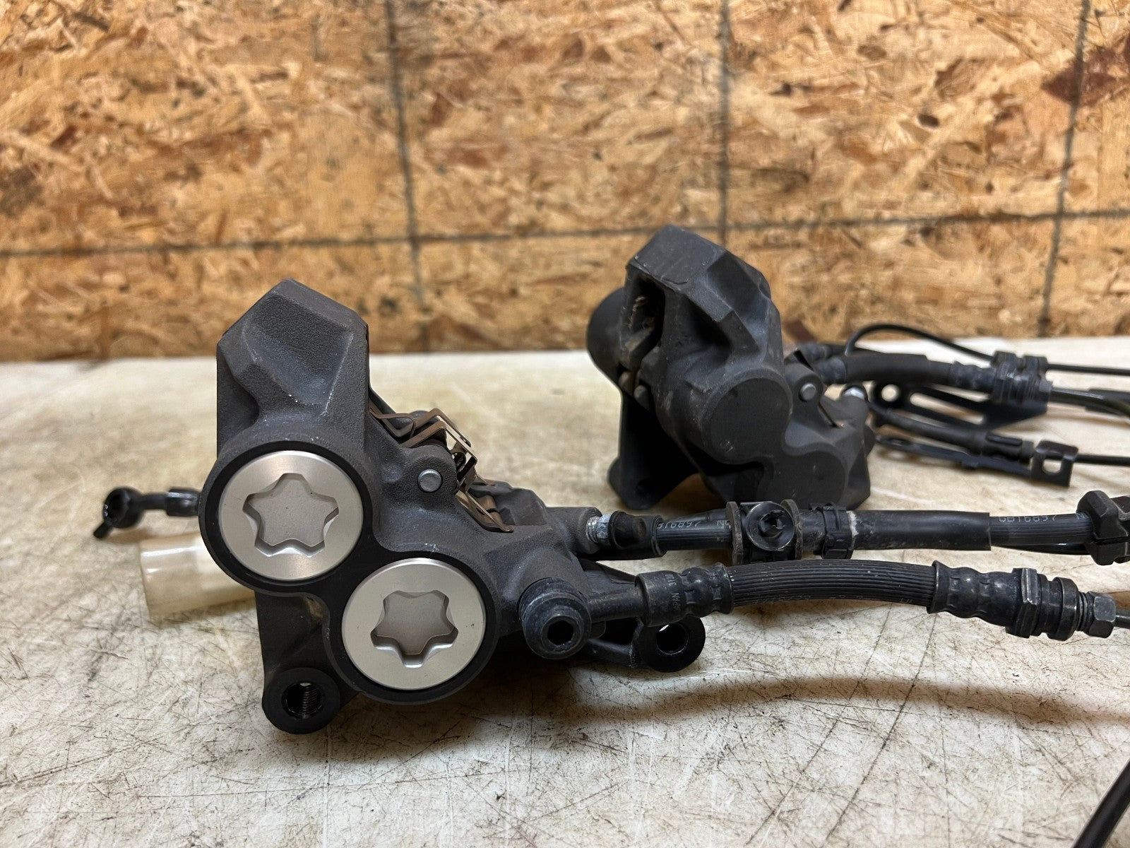 These brake calipers are in excellent working condition and were tested before being removed and come complete with brake lines and ABS sensor, as seen in the pictures.