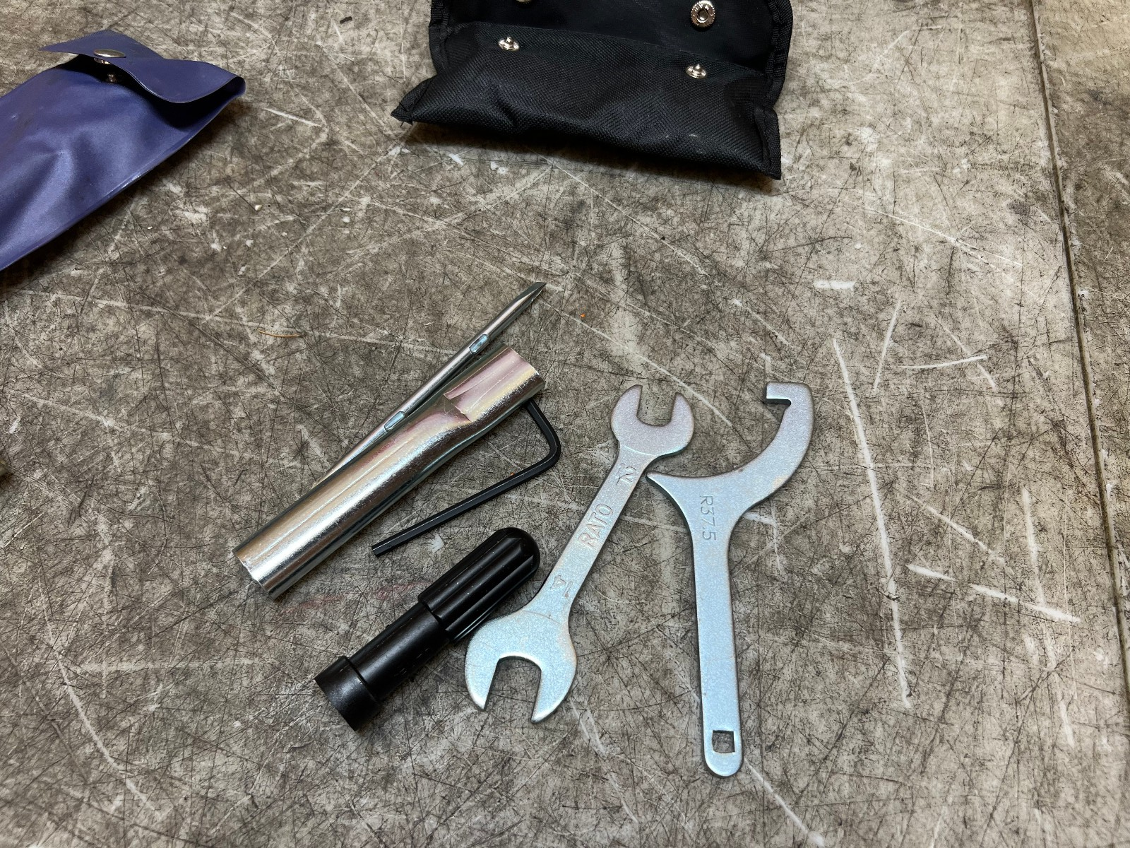 These tool kits are unknown to be complete but come as pictured with owners manual. as seen in photos.