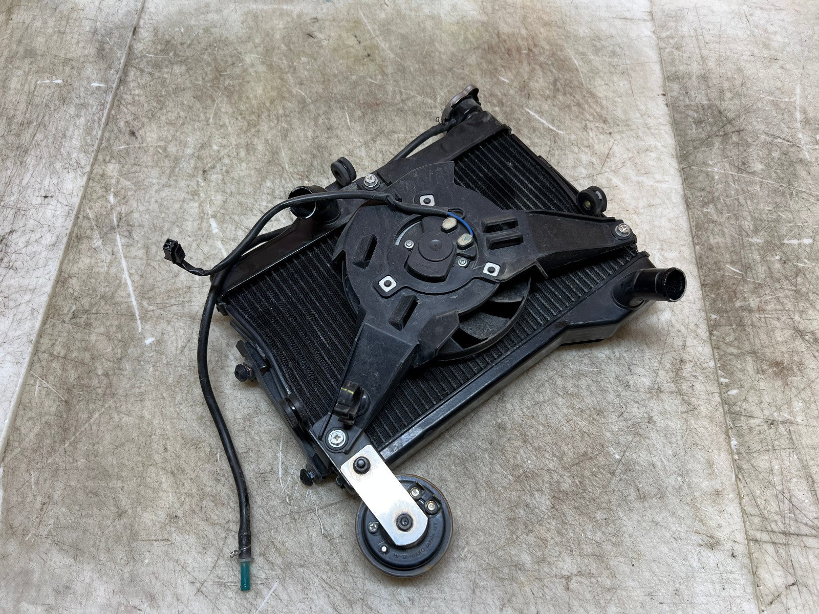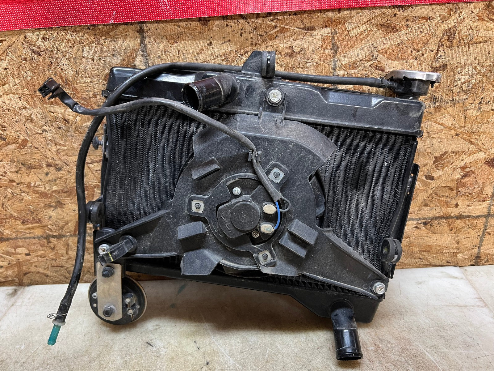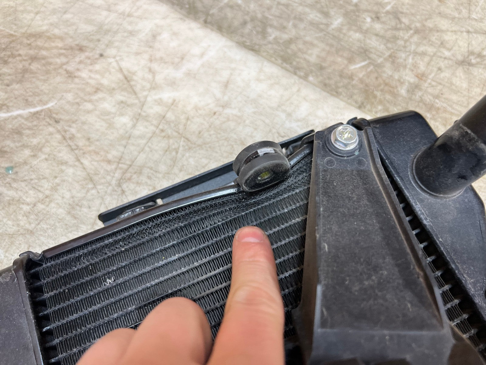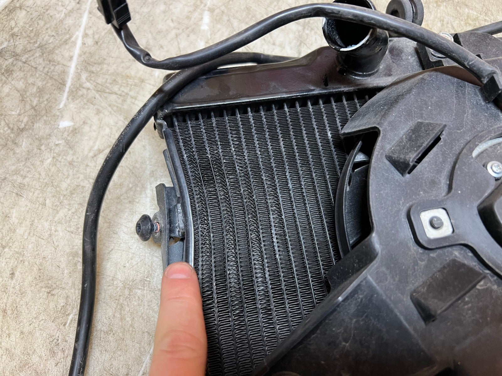This Radiator is in excellent working condition and was tested before being removed with NO leaks. Radiator however is bent in a few spots shown in the close up pictures but does not leak. Comes with protective front grill, Came from a 2023 model. As seen in the pictures.