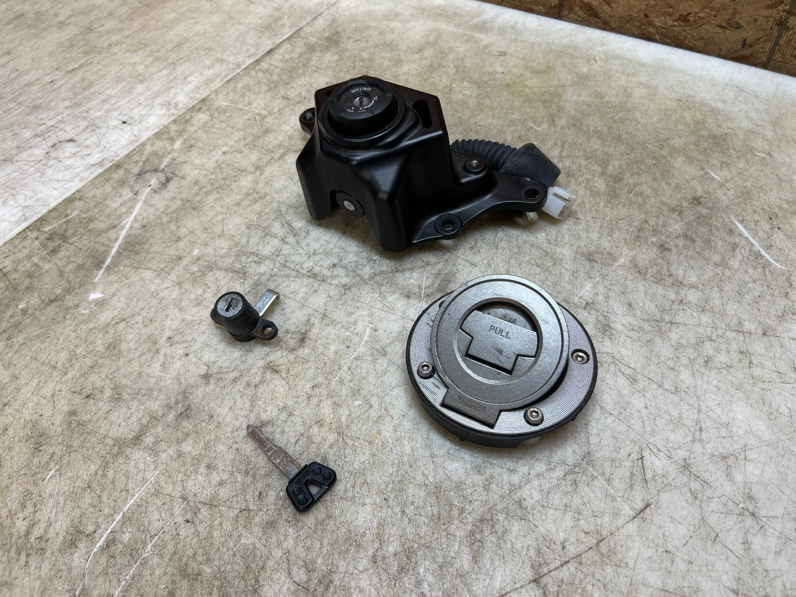 This lock set is in excellent working order and was tested before being removed and comes complete with everything needed to re-key your motorcycle, there are a few small scratches on the gas cap as shown in the close up pictures, as seen in photos.