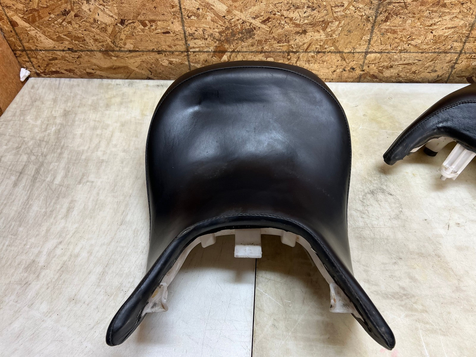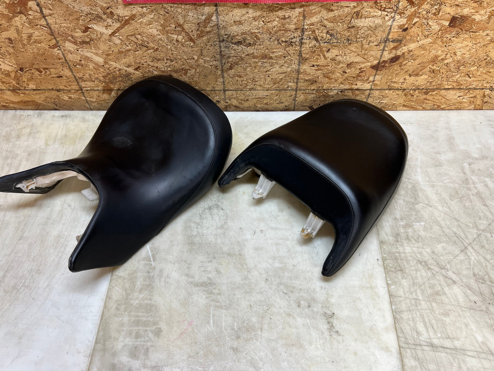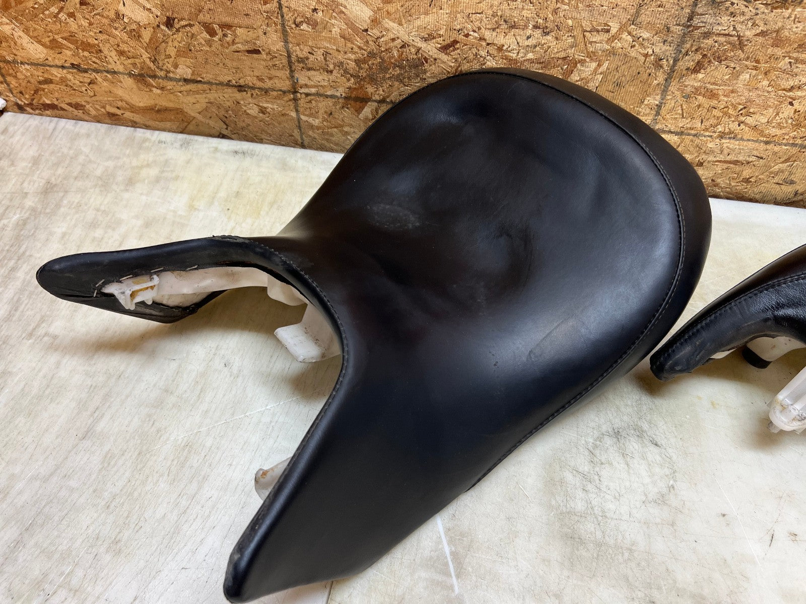 These seats are in great condition and have been re-covered and re-shaped by Rich's Custom Seats but use the factory base. There is one very small wear tear on the riders seat along the top seam, as seen in the pictures.