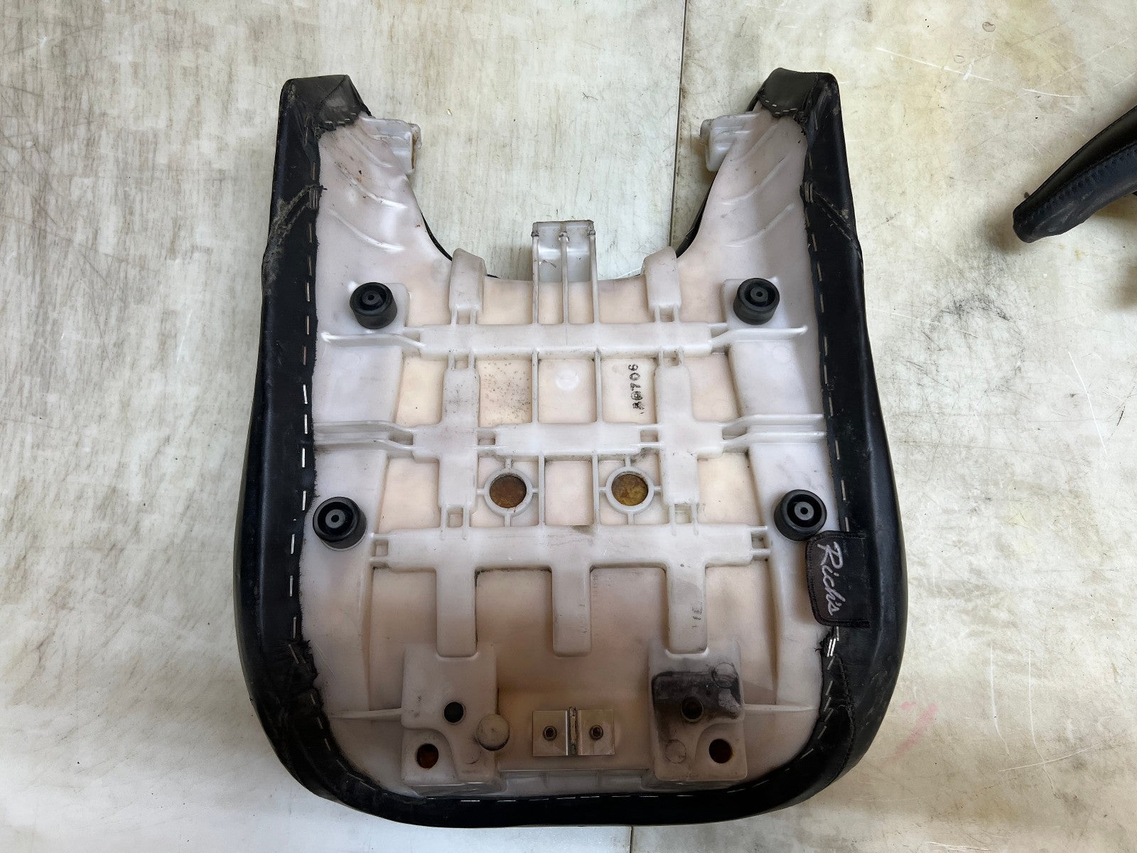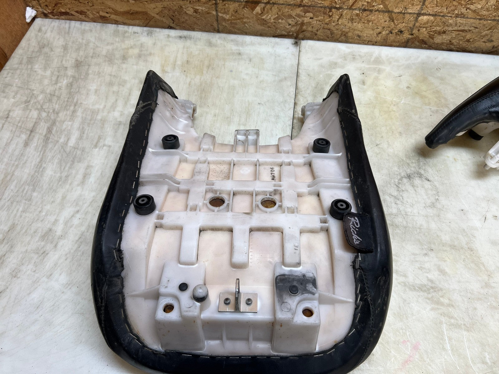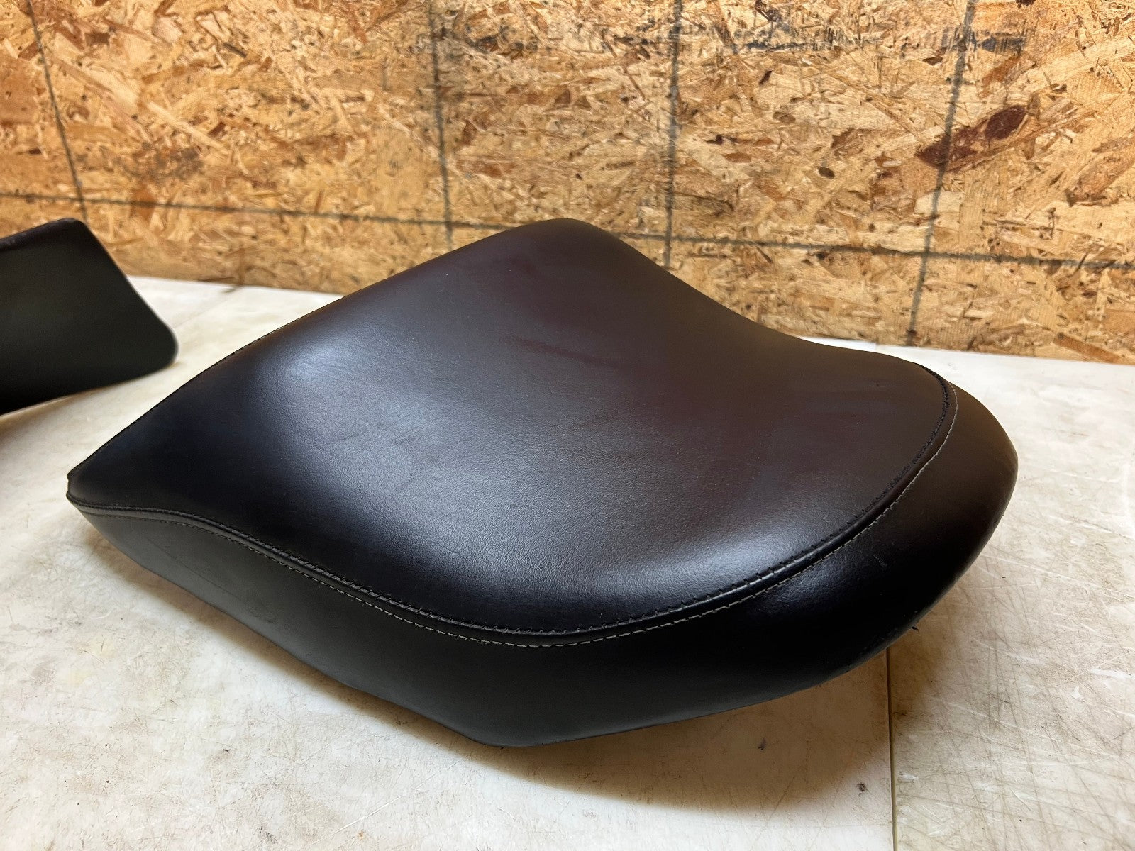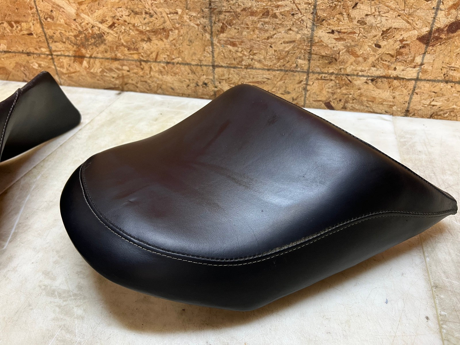 These seats are in great condition and have been re-covered and re-shaped by Rich's Custom Seats but use the factory base. There is one very small wear tear on the riders seat along the top seam, as seen in the pictures.