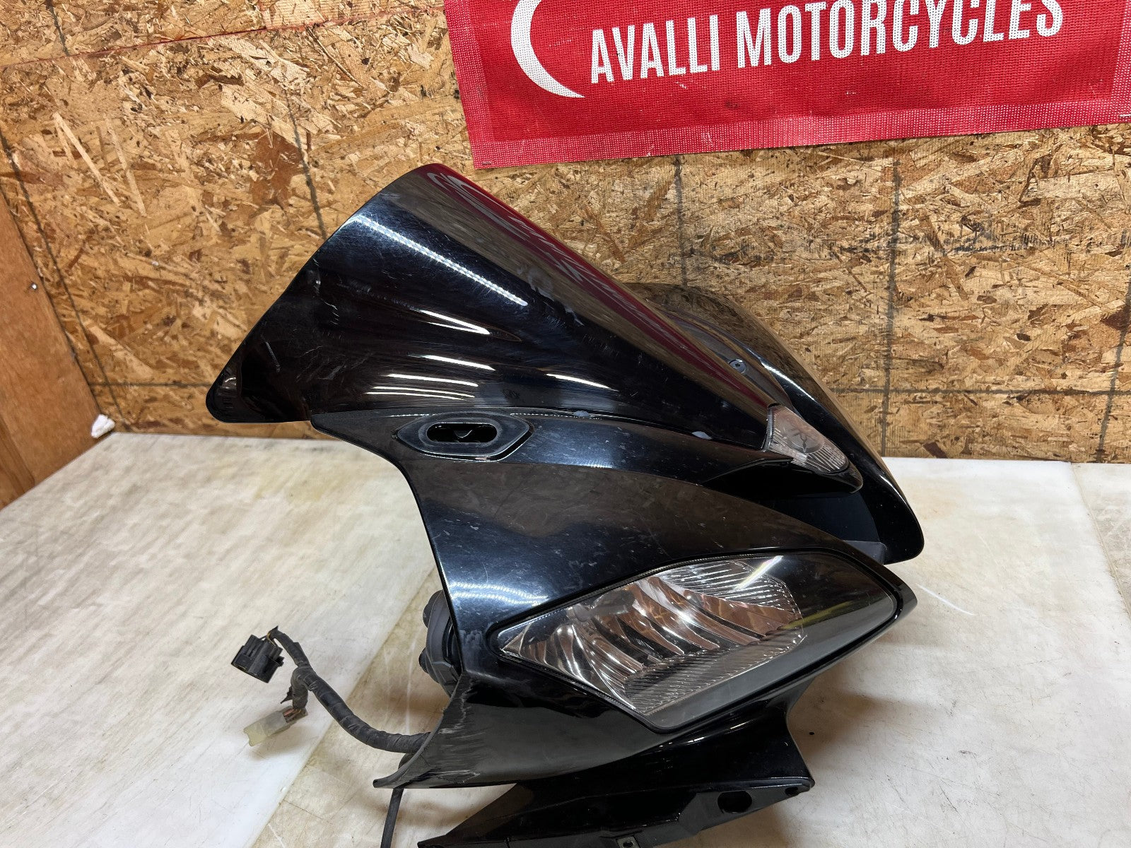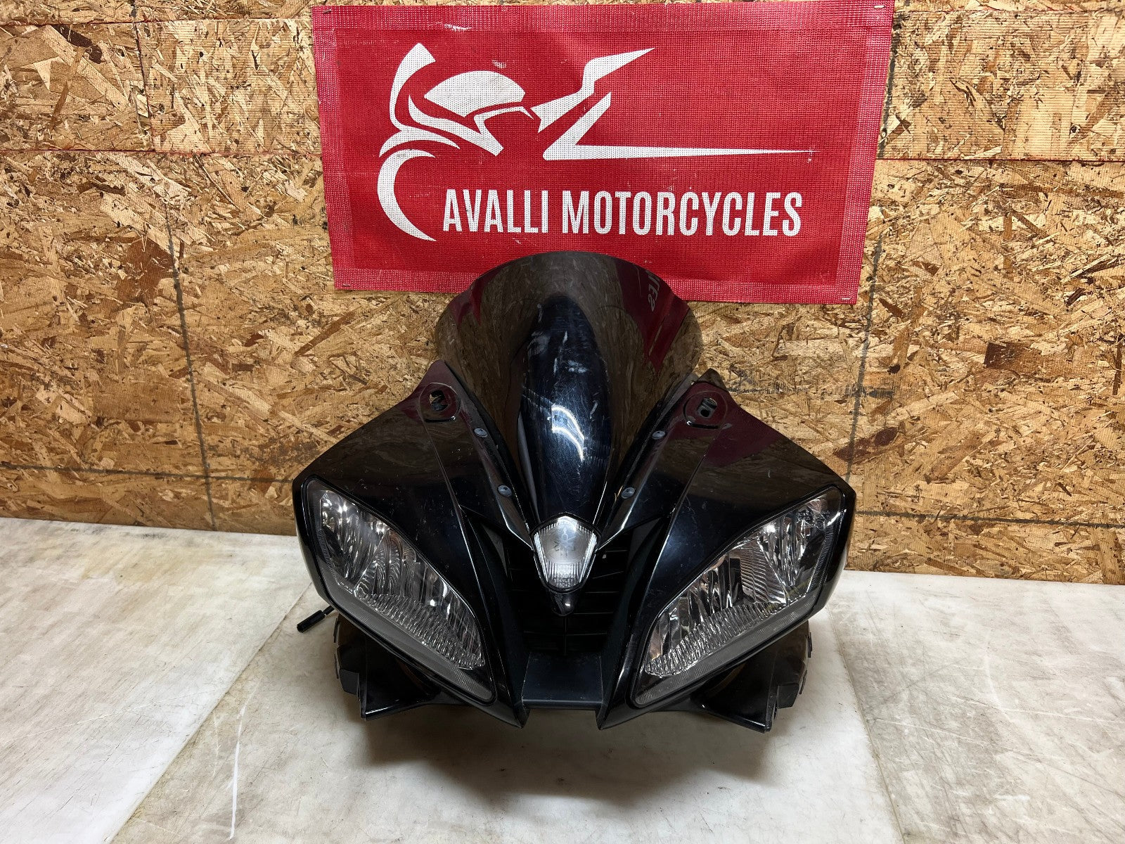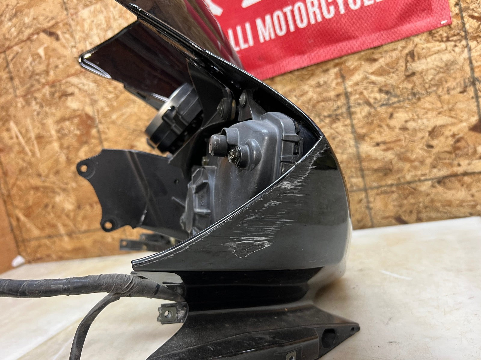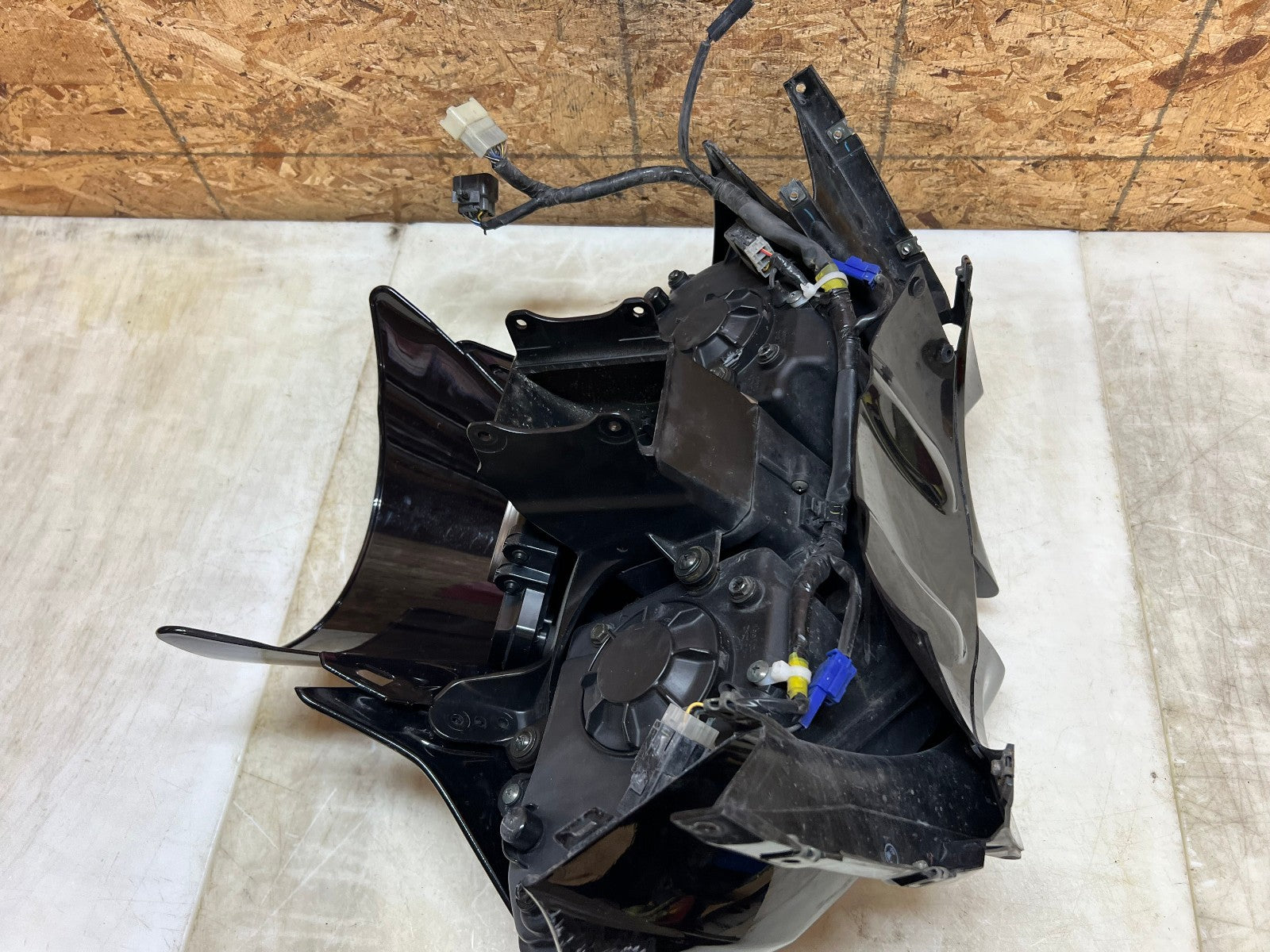 These headlights are in excellent working condition however there are a few broken tabs and cracks in the headlight housing which can easily be repaired as all the broken bits are still attached to the front fairing. These are being sold complete with the front fairing, the windscreen, the fairing stay with gauge cluster and front nose harness. The front fairing as some rash along the right corner as shown in the close up pictures. Mileage is unknown on the cluster. as seen in the pictures.