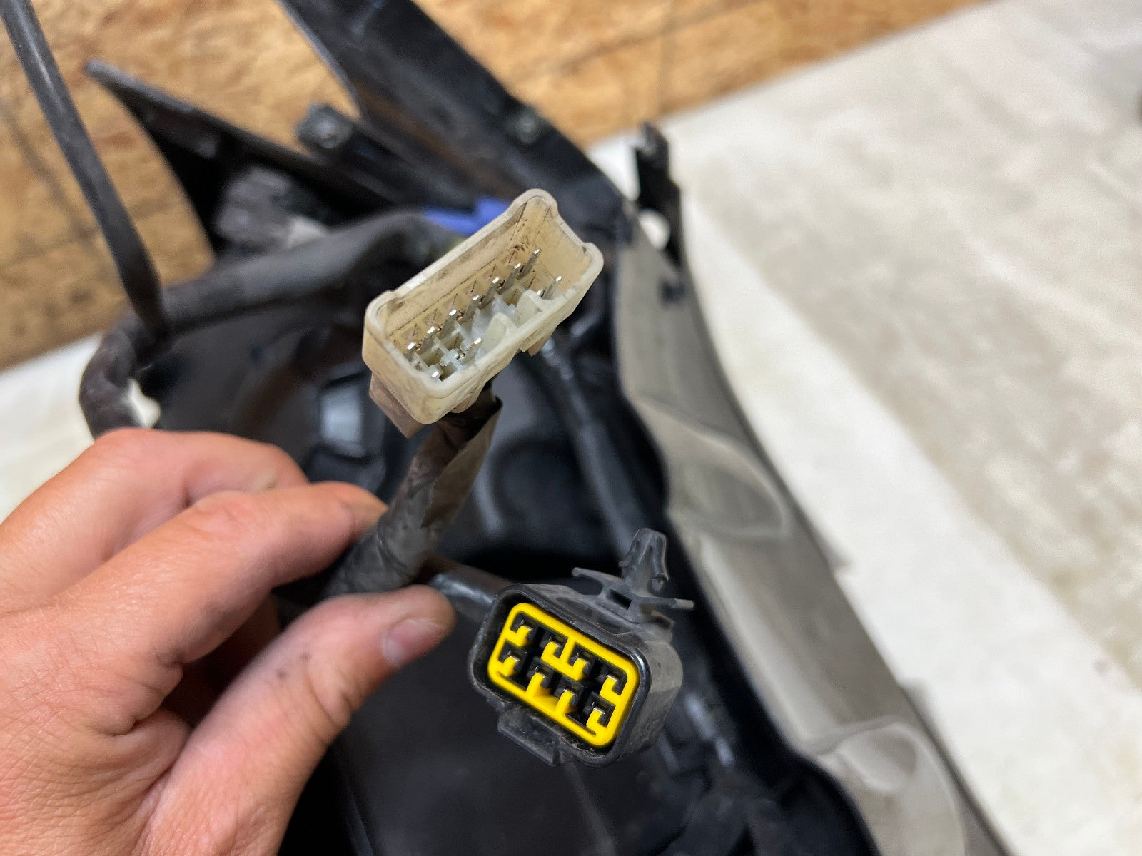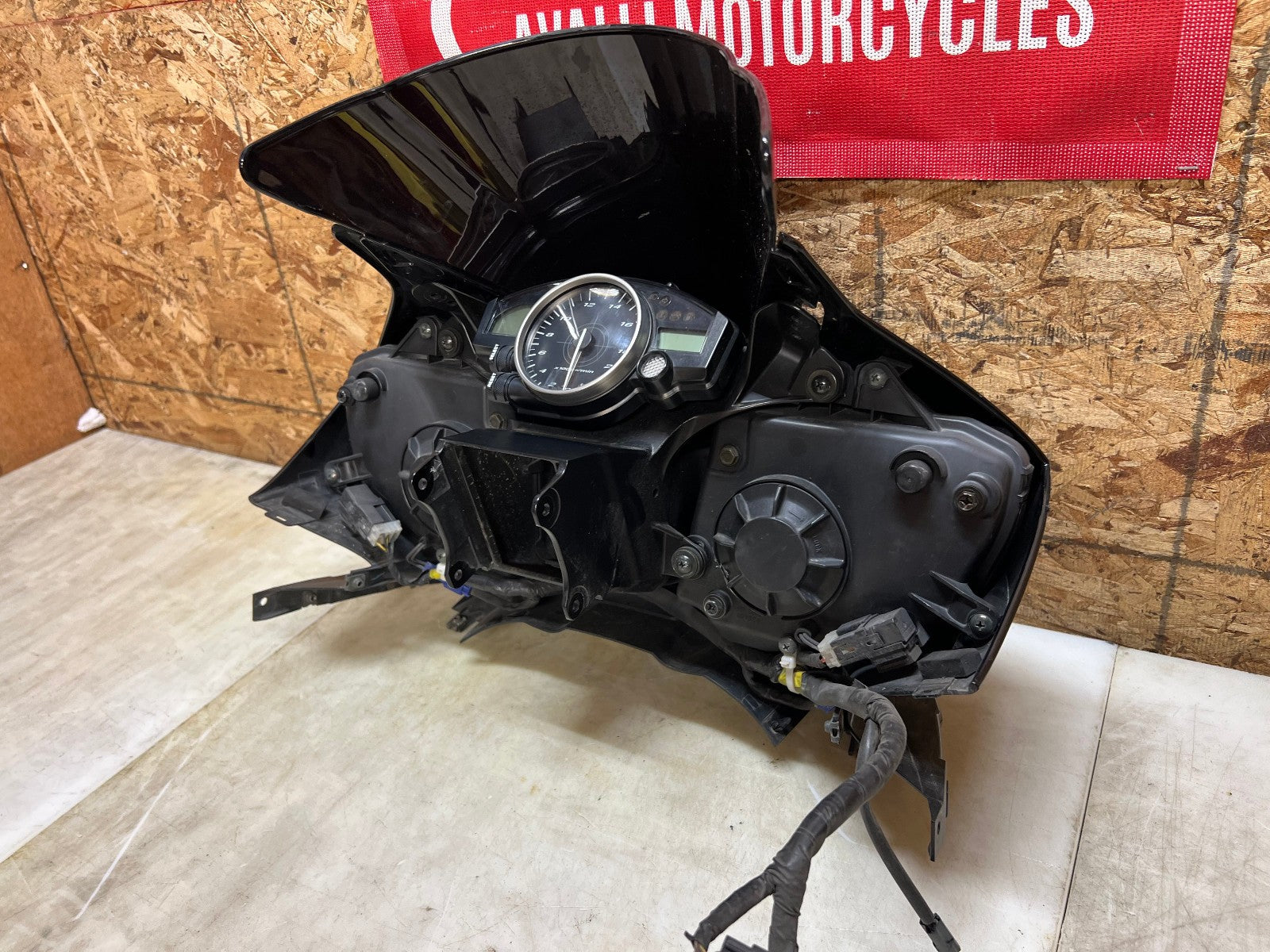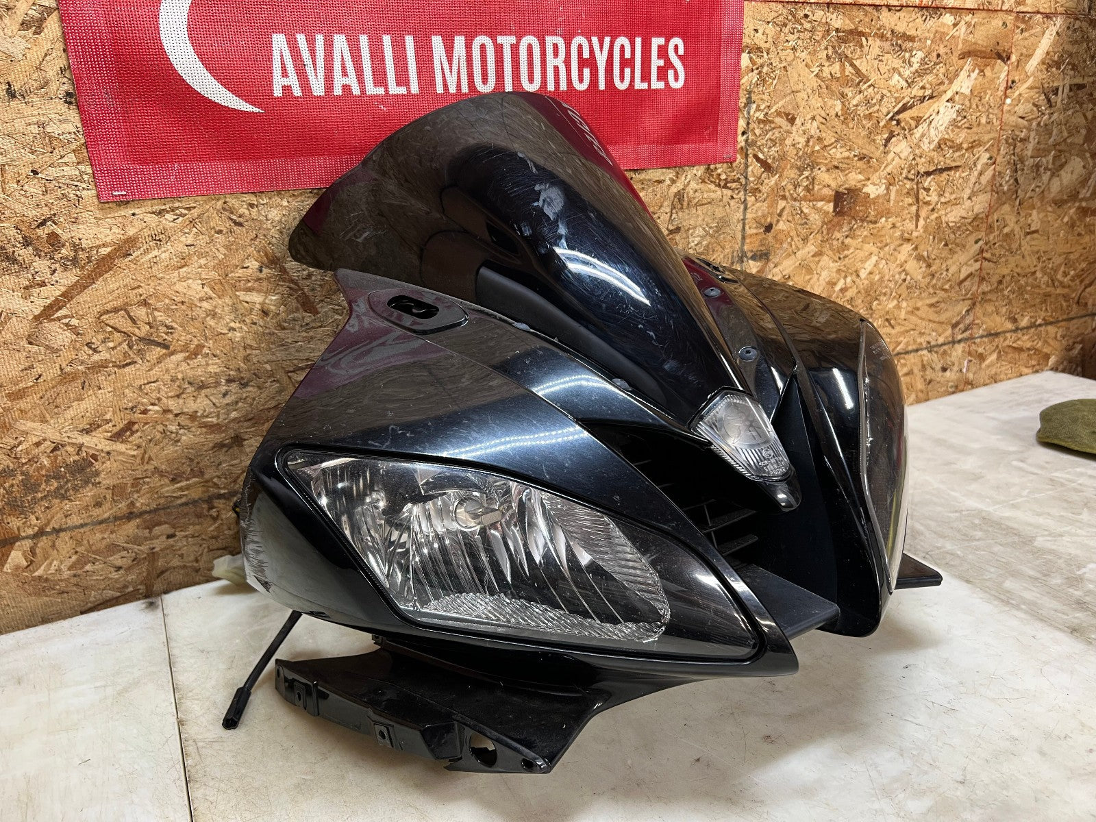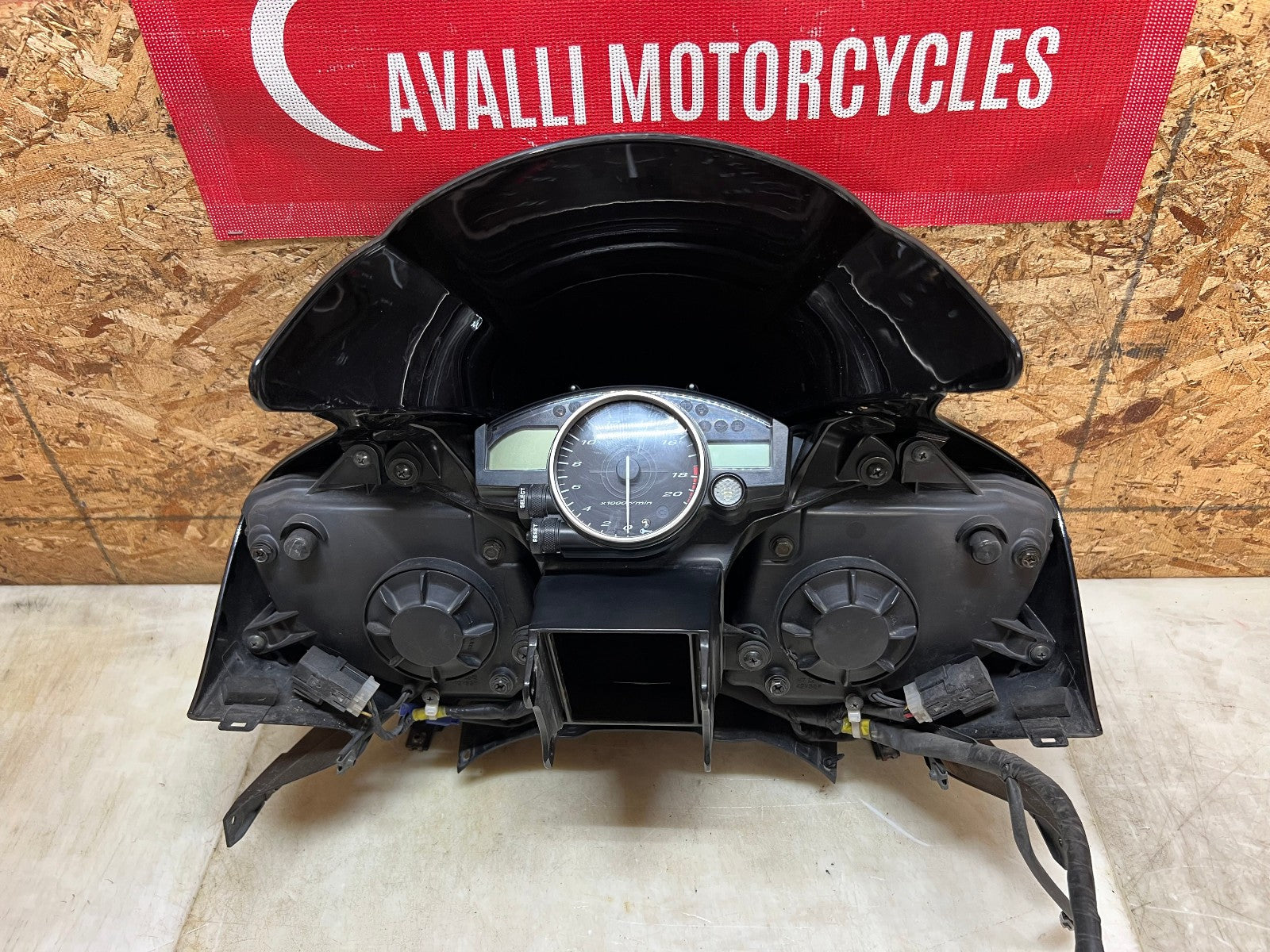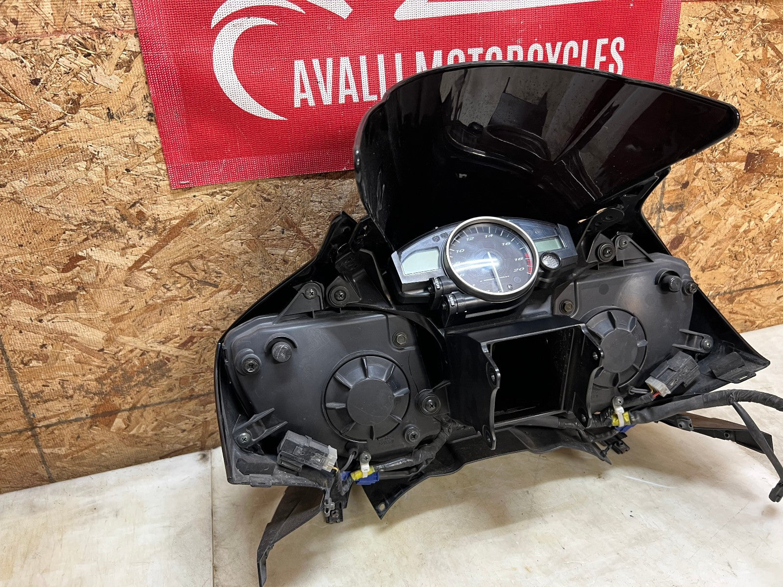 These headlights are in excellent working condition however there are a few broken tabs and cracks in the headlight housing which can easily be repaired as all the broken bits are still attached to the front fairing. These are being sold complete with the front fairing, the windscreen, the fairing stay with gauge cluster and front nose harness. The front fairing as some rash along the right corner as shown in the close up pictures. Mileage is unknown on the cluster. as seen in the pictures.