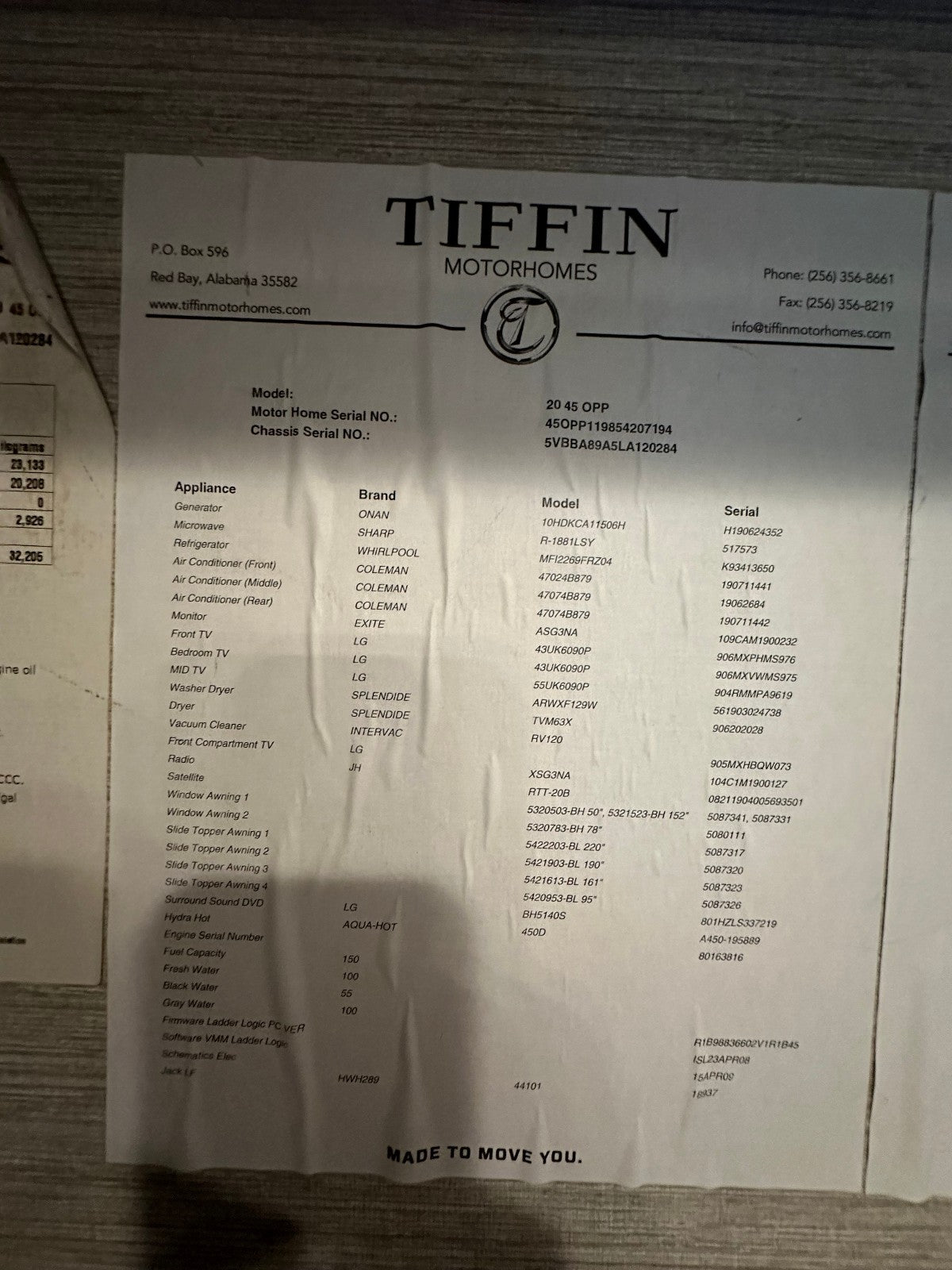 This listing is for a 2020 TIFFIN ALLEGRO 45OPP 605HP BUS