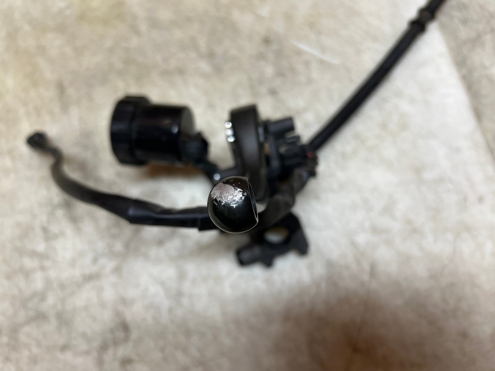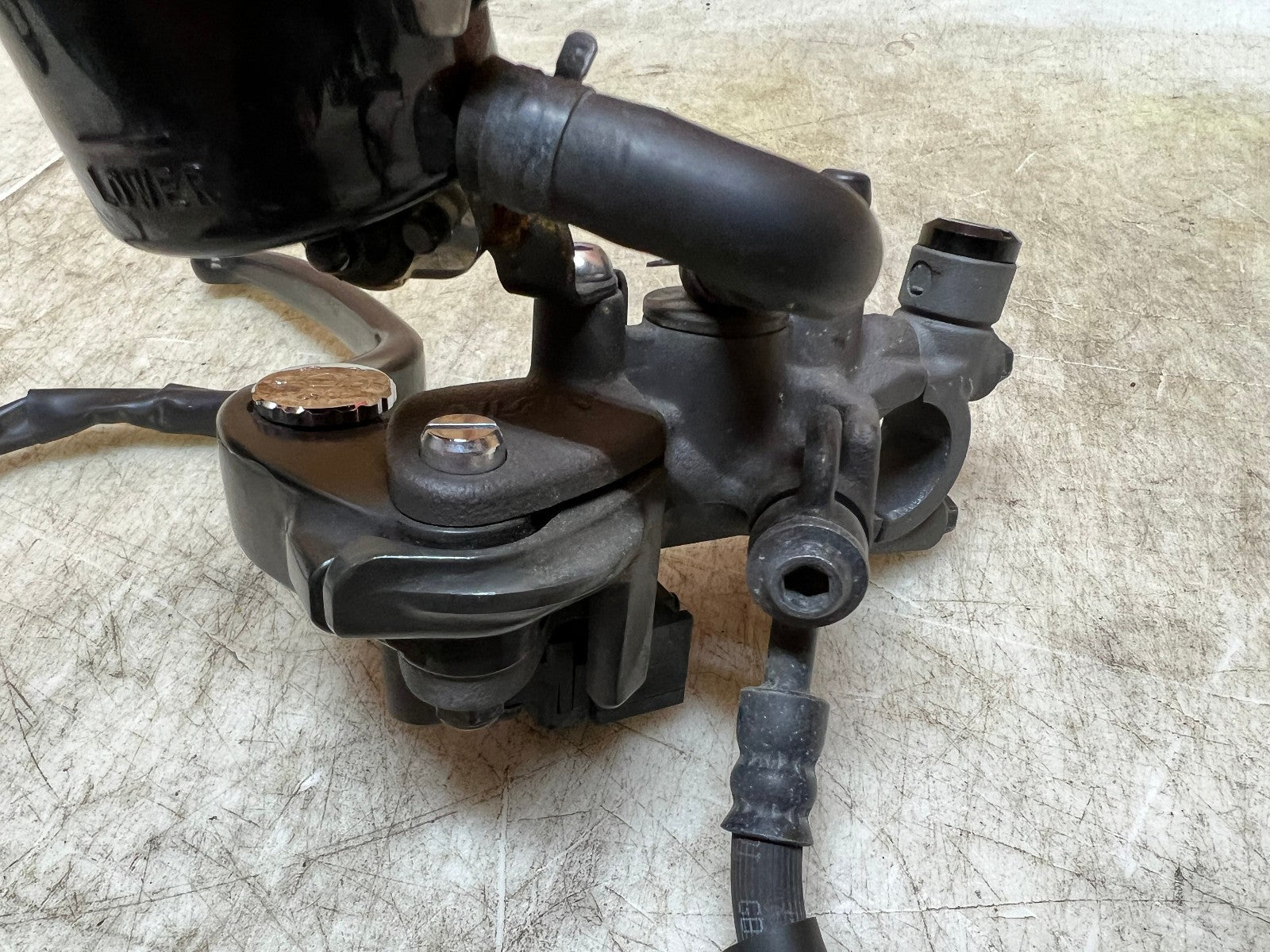 This master cylinder is in excellent working condition and was tested before being removed and comes complete with fluid reservoir along with brake lever which has some minor rash on the tip of the lever, as seen in photos.