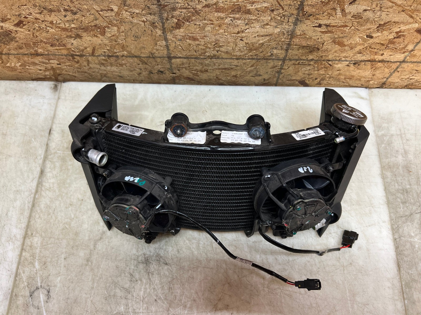 This radiator is in perfect condition and is straight and true with NO leaks, breaks or bends or cracks. Comes complete with cooling fans and plastic trim, only has xxx,x89 miles on it, as seen in photos.