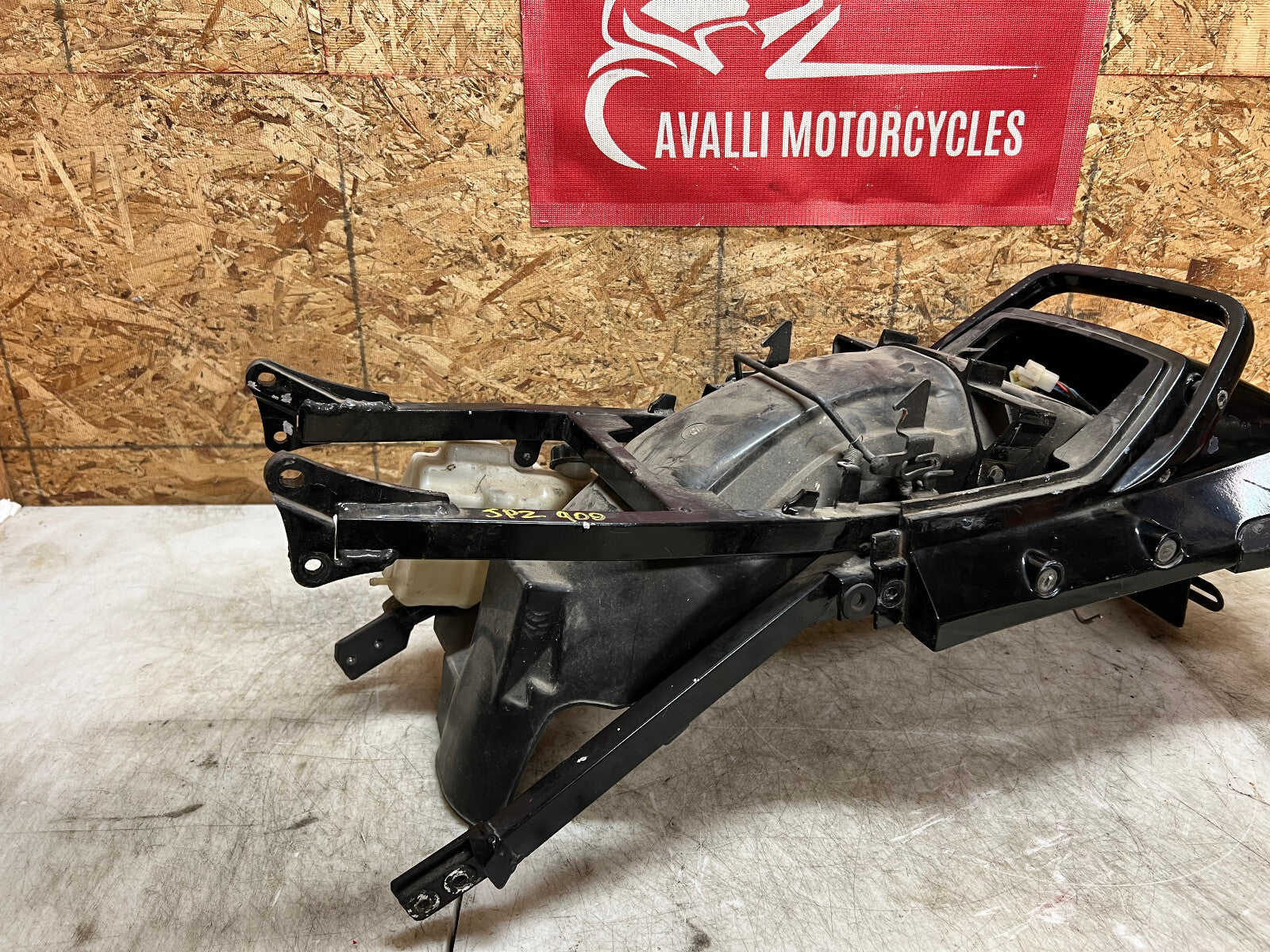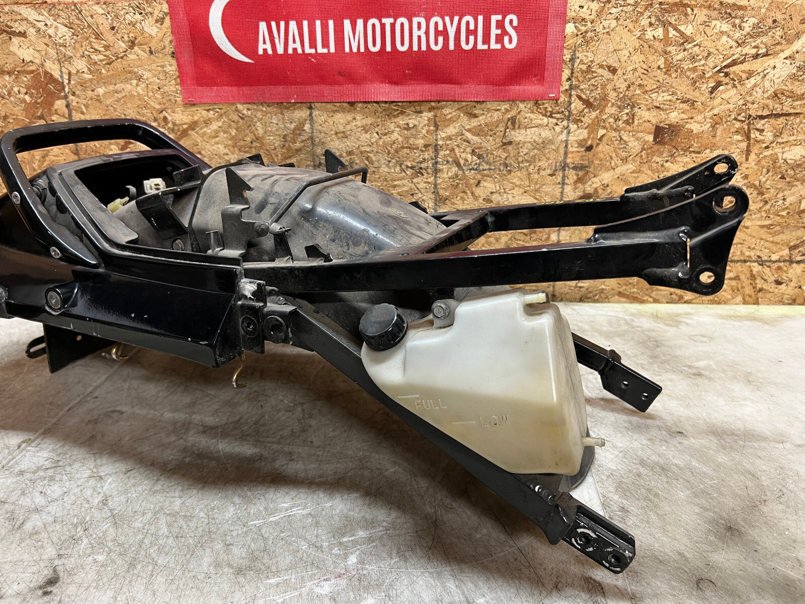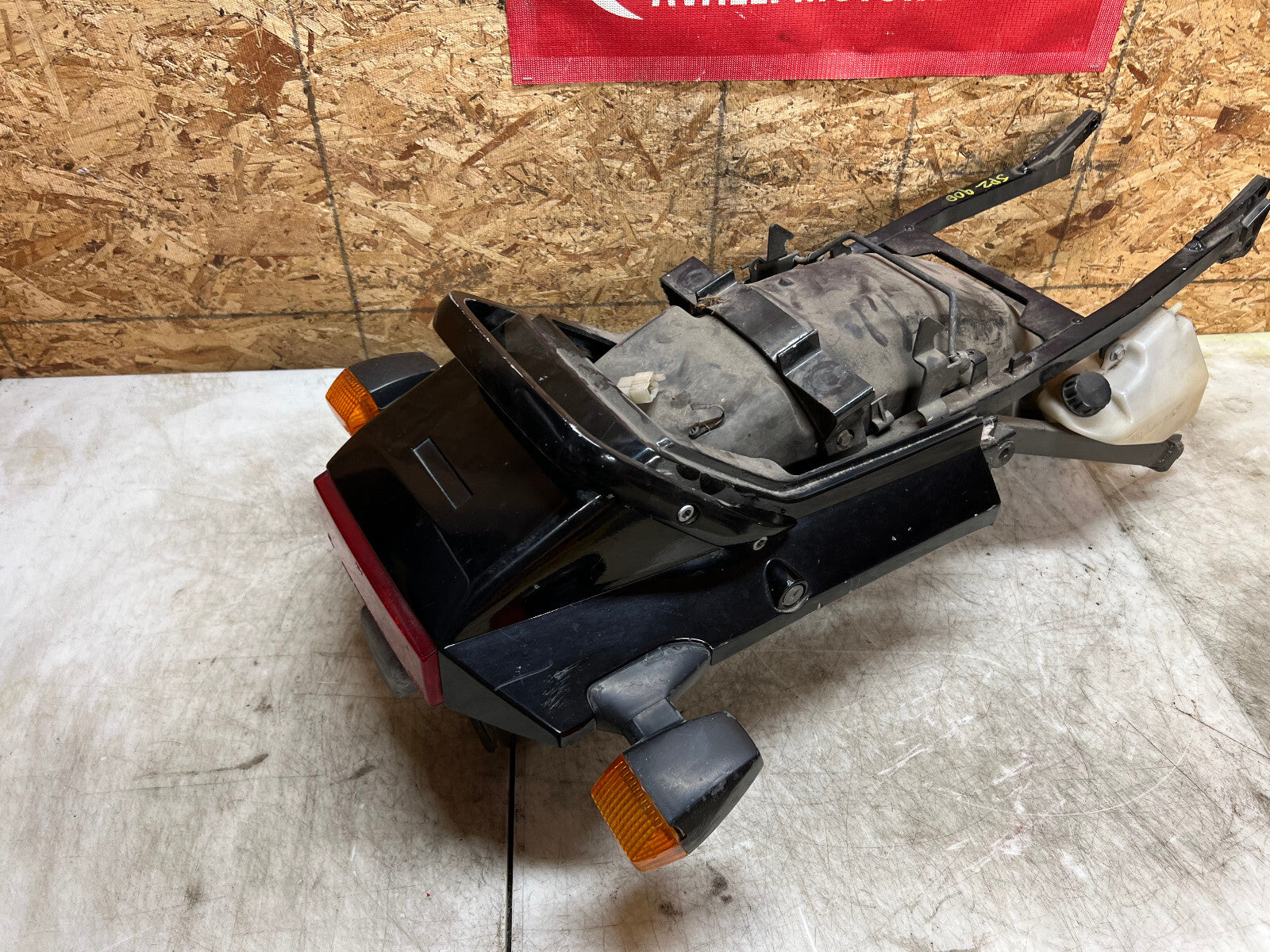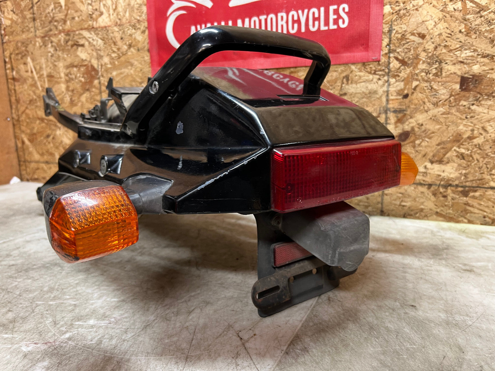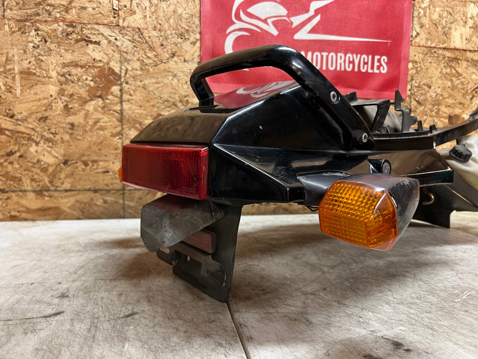 This subframe is in excellent condition and is straight and true and comes complete with tail fairing, tail light, turn signals and battery tray, as seen in photos.