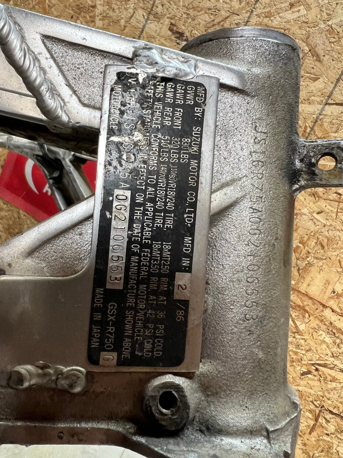 This listing is for a 1986 SUZUKI GSX-R 750 FRAME