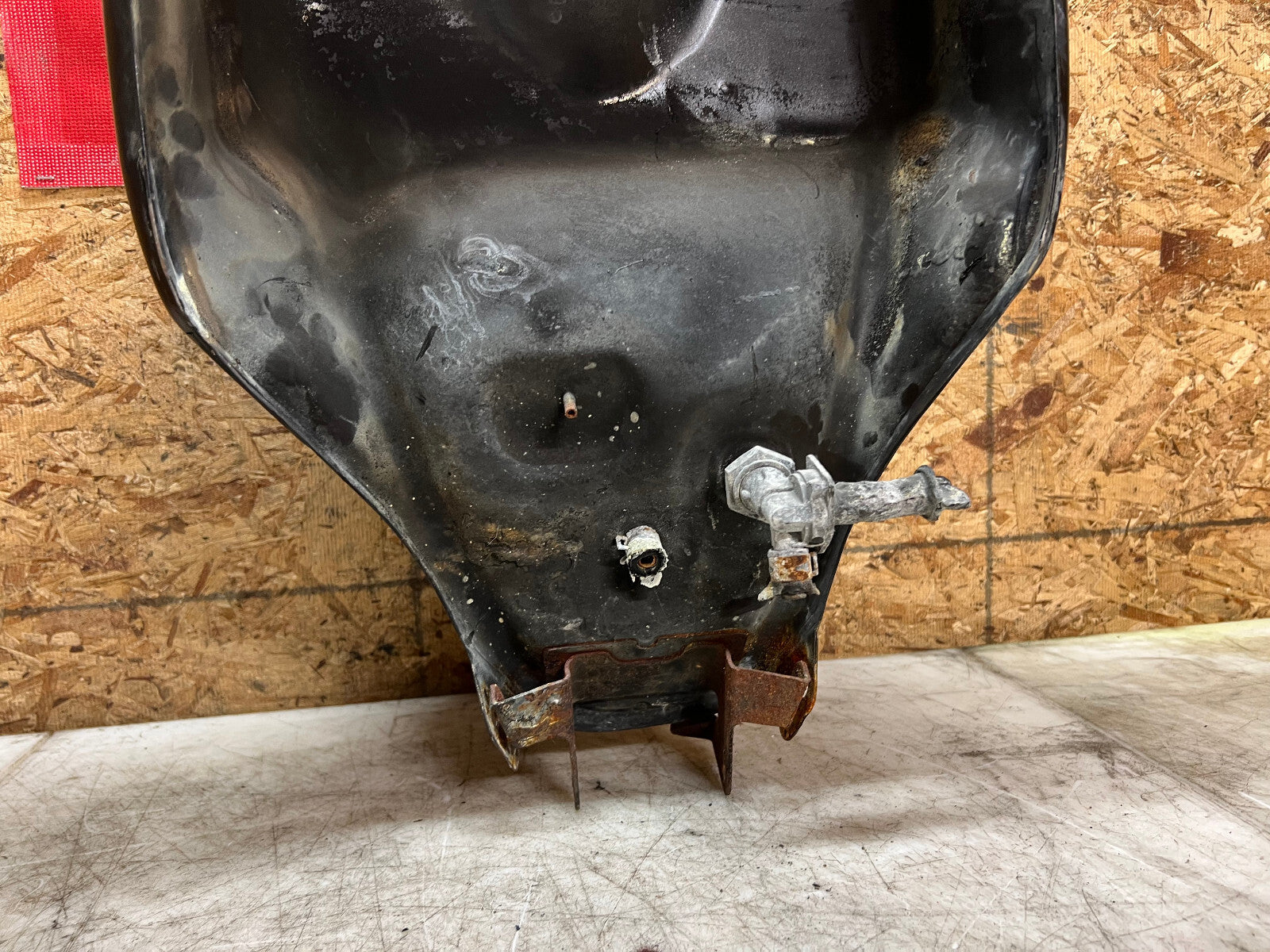 This gas tank is in fair condition considering its age however its was on a motorcycle that was involved in a small fire so the petcock is melted and some of the graphics are also melted off. This gas tank would make a great replacement for an old project or replacement if yours is badly damaged. As seen in the pictures.